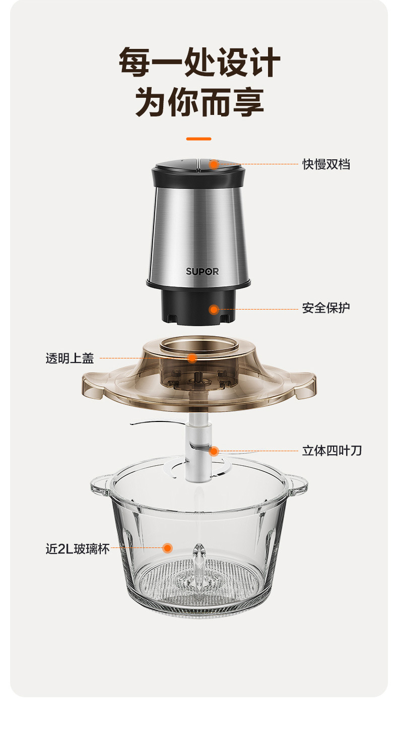 Supor 고기 분쇄기 가정용 전기 소형 다기능 요리 혼합 지상 접시 만두 다진 고기 JR05-300