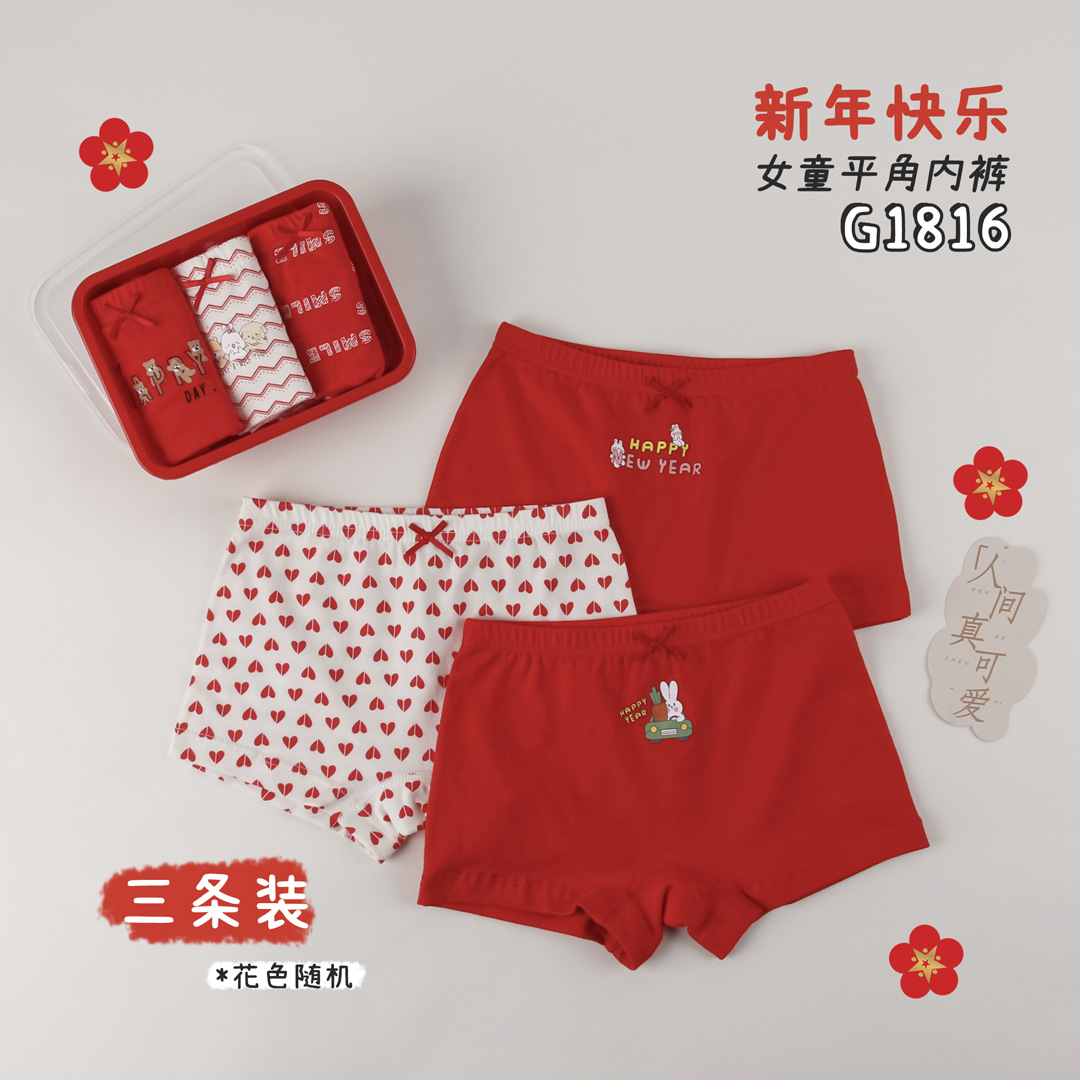 • G1816 여아용 빨간색 새해 스타일 3팩(임의의 색상 포함)