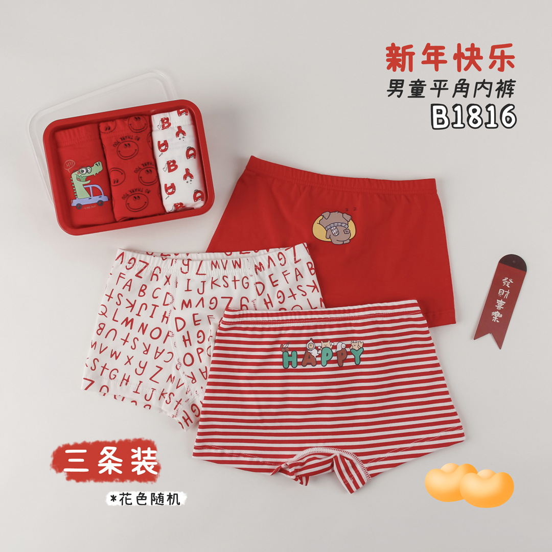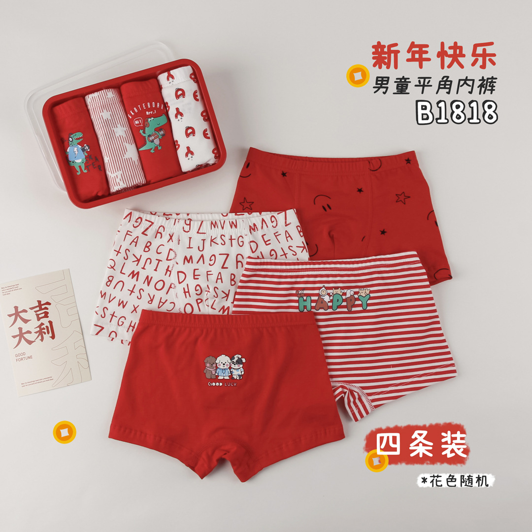• B1818 남아용 4팩 레드 신년 스타일 랜덤 컬러