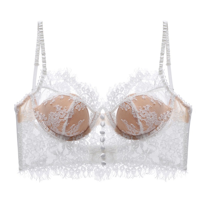 새로운 프랑스 스타일 부드러운 레이스 U 자형 대형 노출 다시 섹시한 속옷 여성용 얇은 푸시 업 BRA BRA스토어 가기