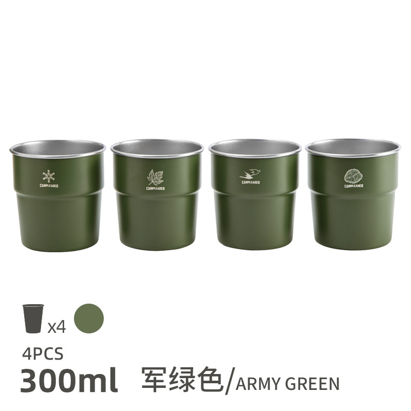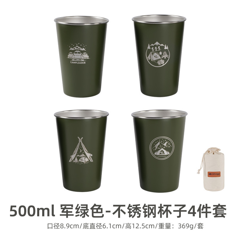 • 500ml-Army 그린-스테인리스 컵 4 개 세트 (수납 봉투)