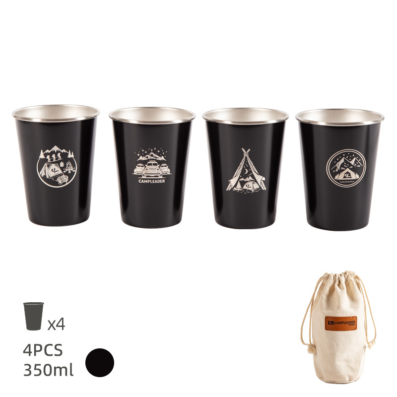 • 블랙 스테인리스 컵 4 입 세트 350ml (보관 봉투)