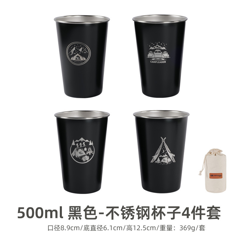 • 500ml-블랙 스테인리스 컵 4 개 세트 (수납 봉투)