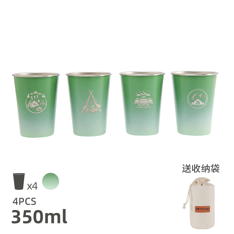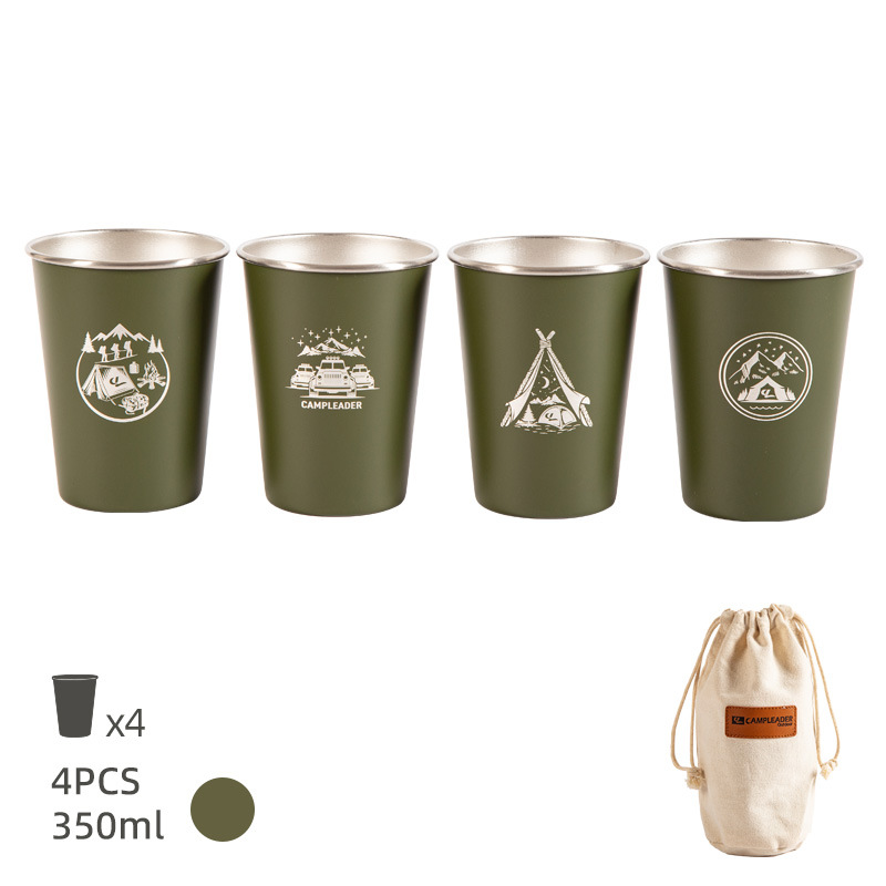• 카키-스테인리스 컵 세트 4 개 350ml (보관 봉투)