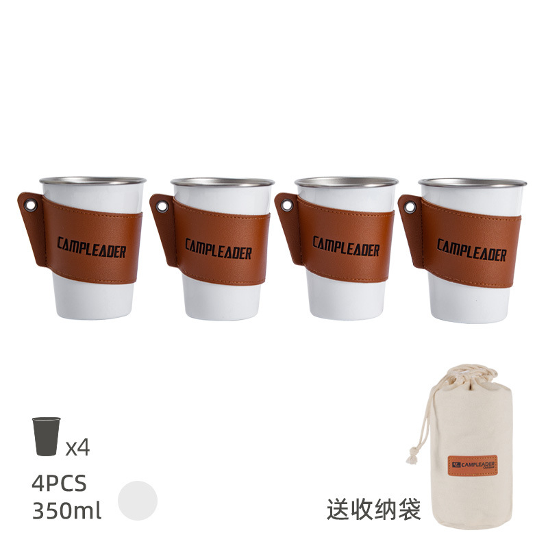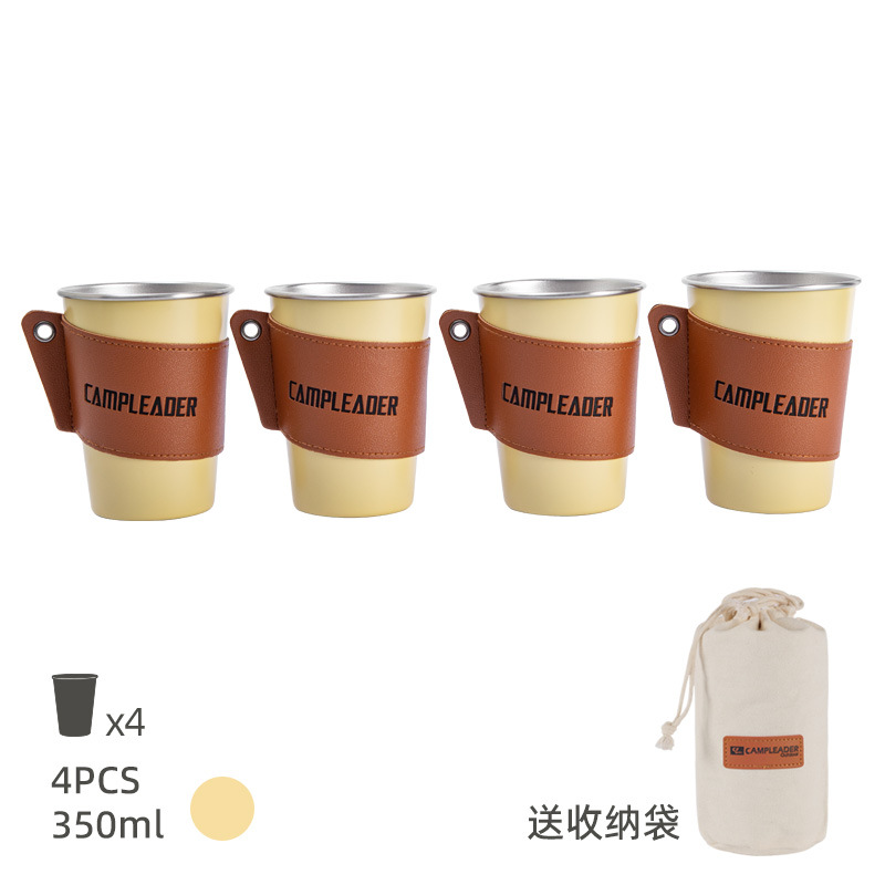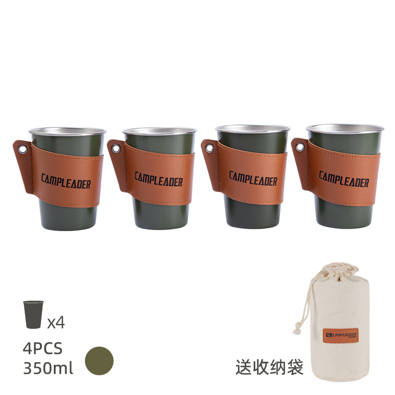 • 카키-스테인리스 컵세트 350ml 4 개 (수납백 + 가죽컵세트)