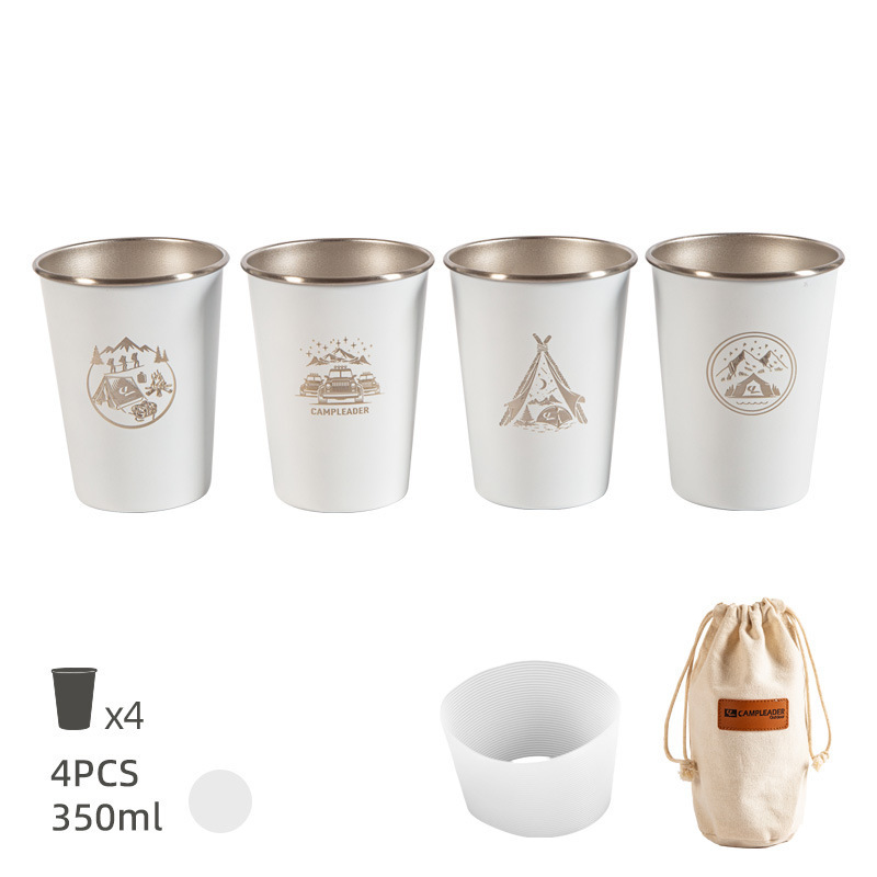 • 화이트 스테인리스 컵 4 개 세트 350ml (수납 봉투 + 실리콘 컵 세트)