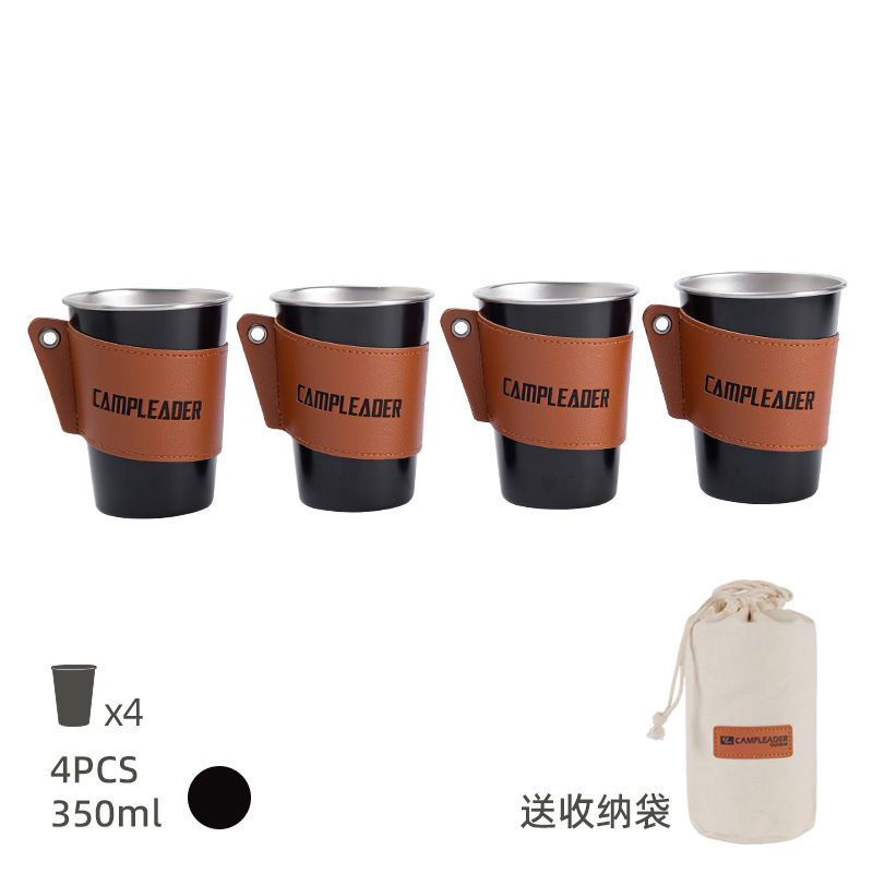 • 4 350ml 블랙 스테인리스 컵 세트 (수납 가방 + 가죽 컵 세트)