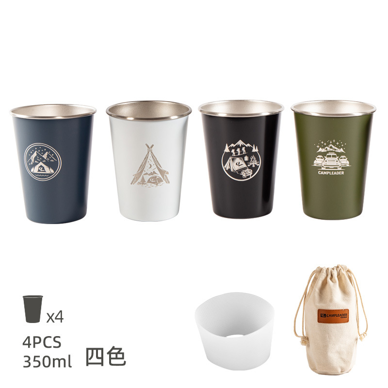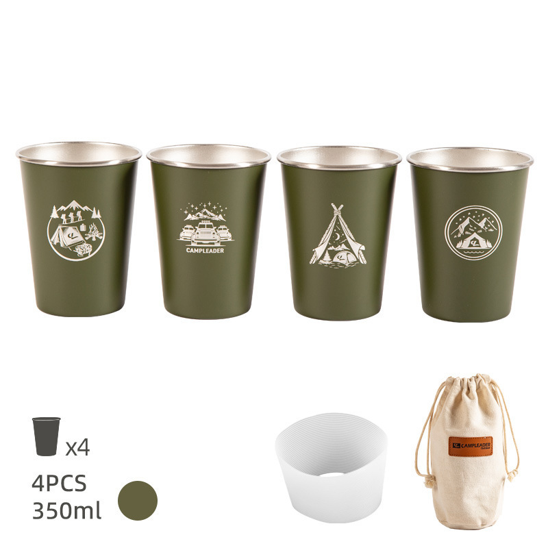 • 카키-스테인리스 컵세트 350ml 4 개 (수납백 + 실리콘 컵세트)