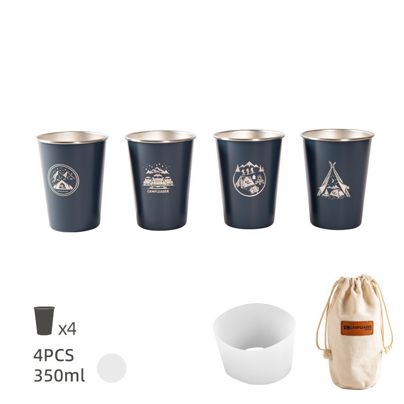 • 다크 블루-스테인리스 컵세트 350ml 4 개 (수납백 + 가죽컵세트)