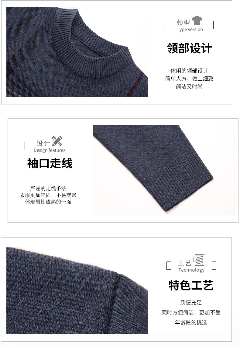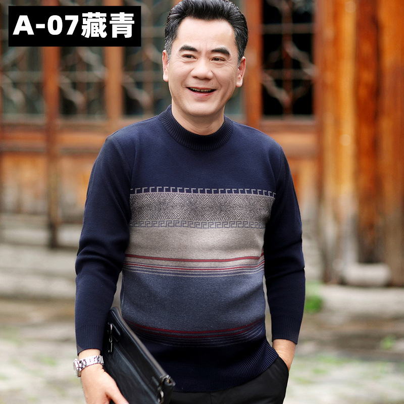 부드러운 양모 두꺼운 남자 스웨터 가을과 겨울 캐주얼 두꺼운 Tongxiang Jacquard 캐주얼 라운드 넥 느슨한 울 스웨터스토어 가기