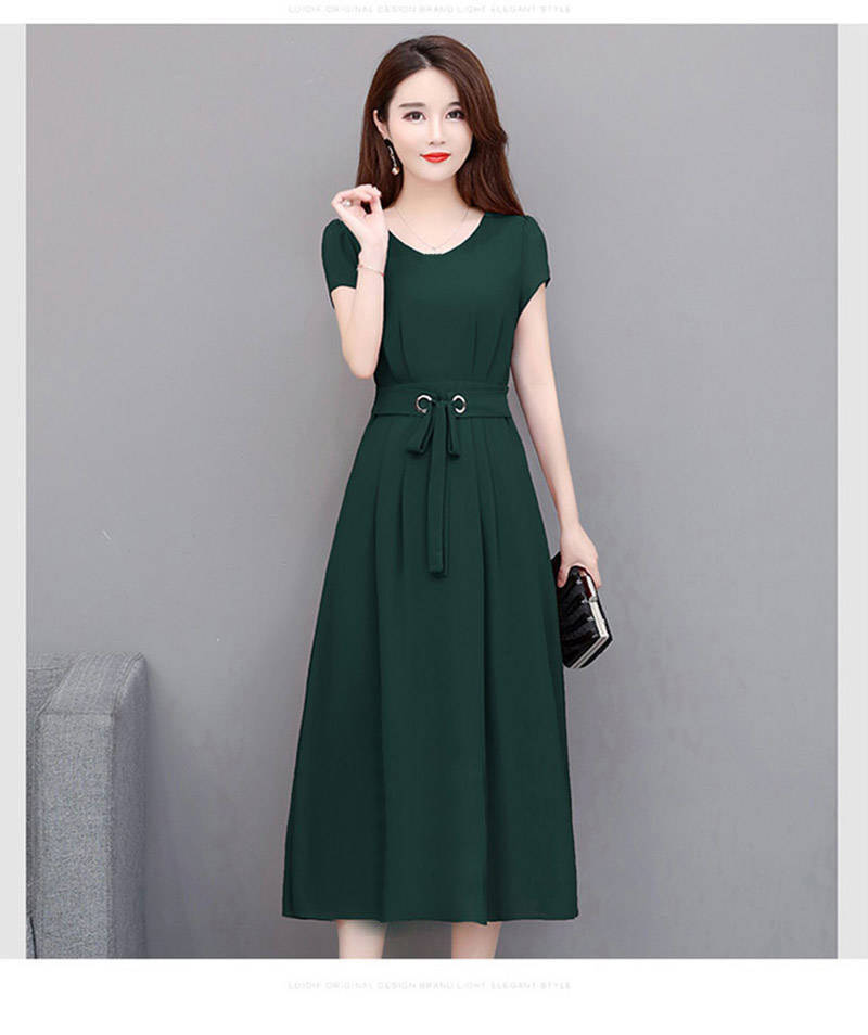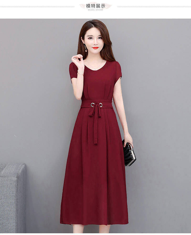 여성용 플러스 사이즈 원피스 2026 여름 반팔 중간 길이 무릎 위까지 오는 스커트 벨트 포함 슬림핏 A라인 스커트