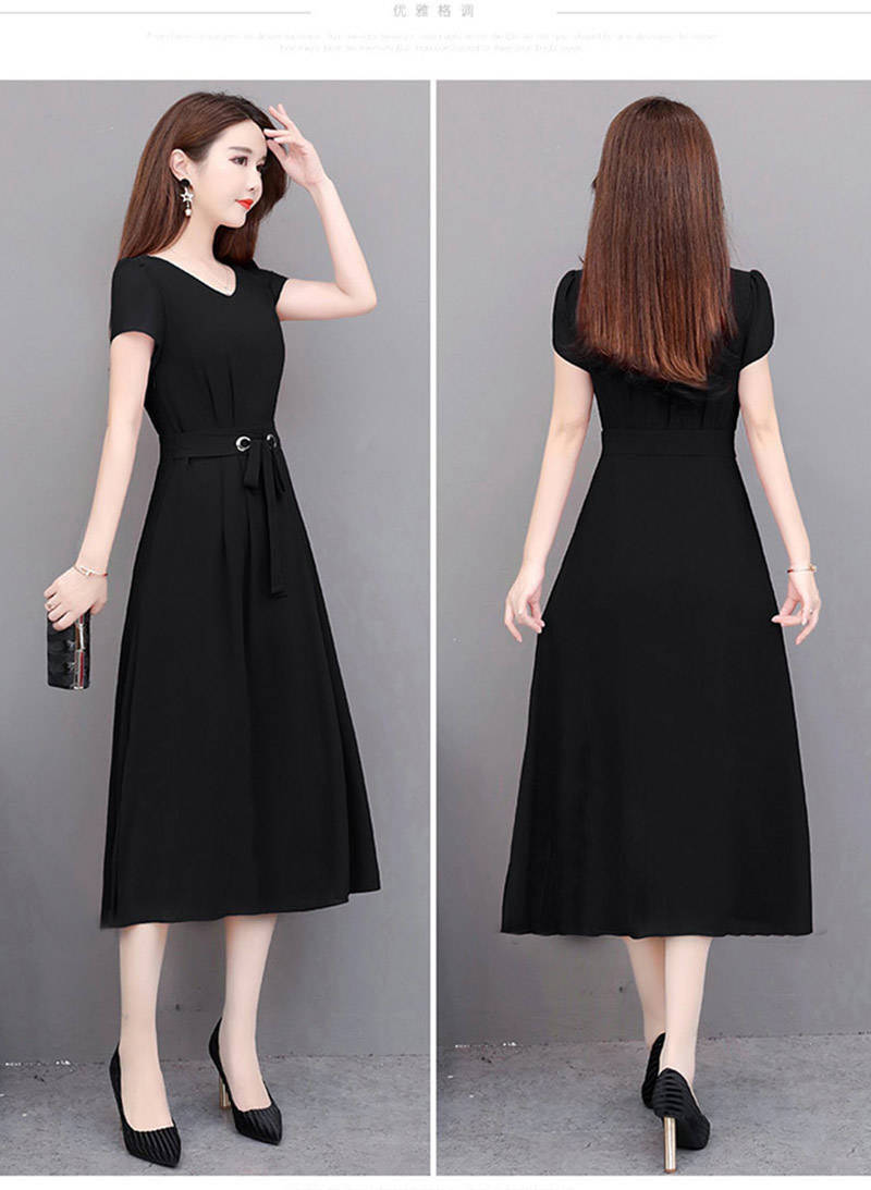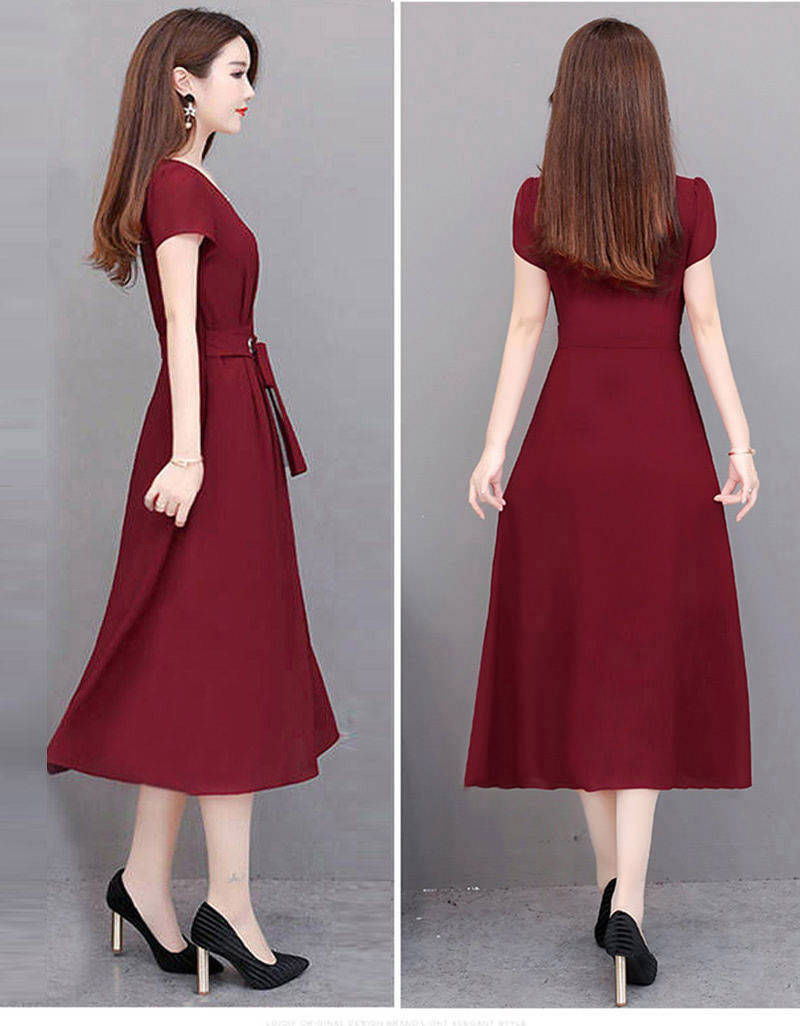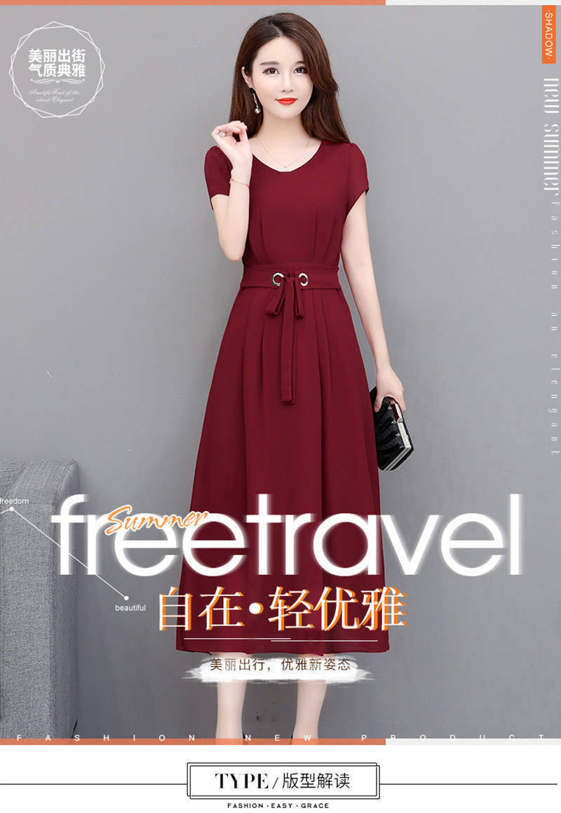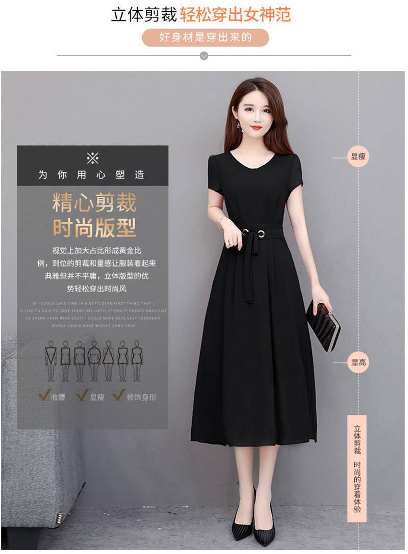 여성용 플러스 사이즈 원피스 2026 여름 반팔 중간 길이 무릎 위까지 오는 스커트 벨트 포함 슬림핏 A라인 스커트스토어 가기