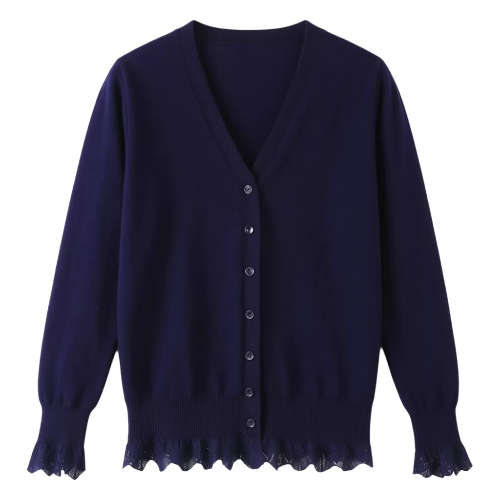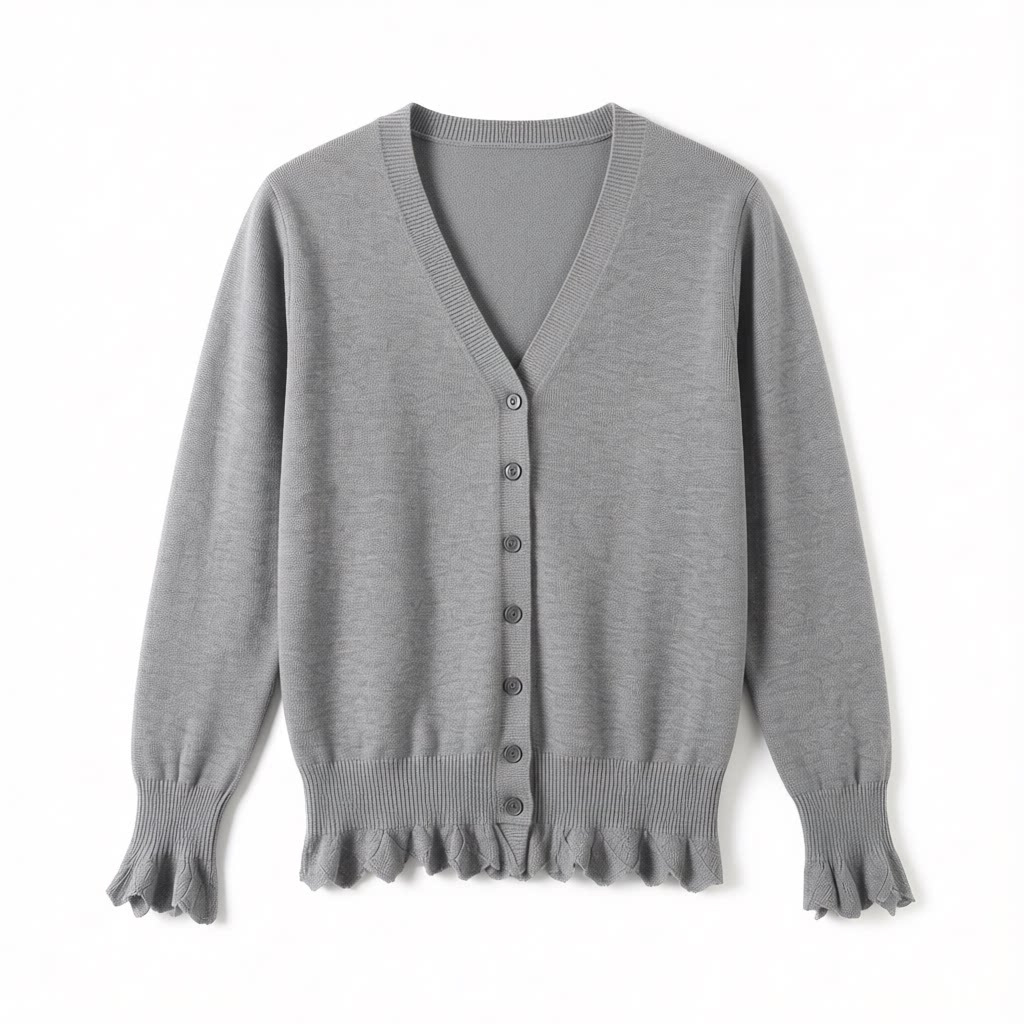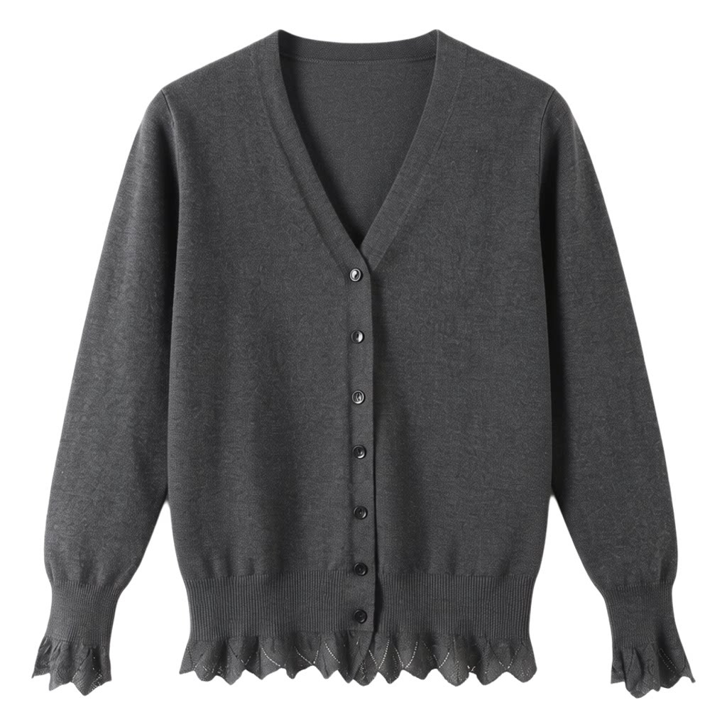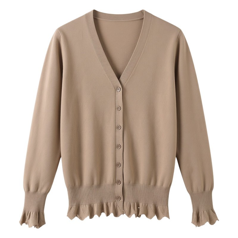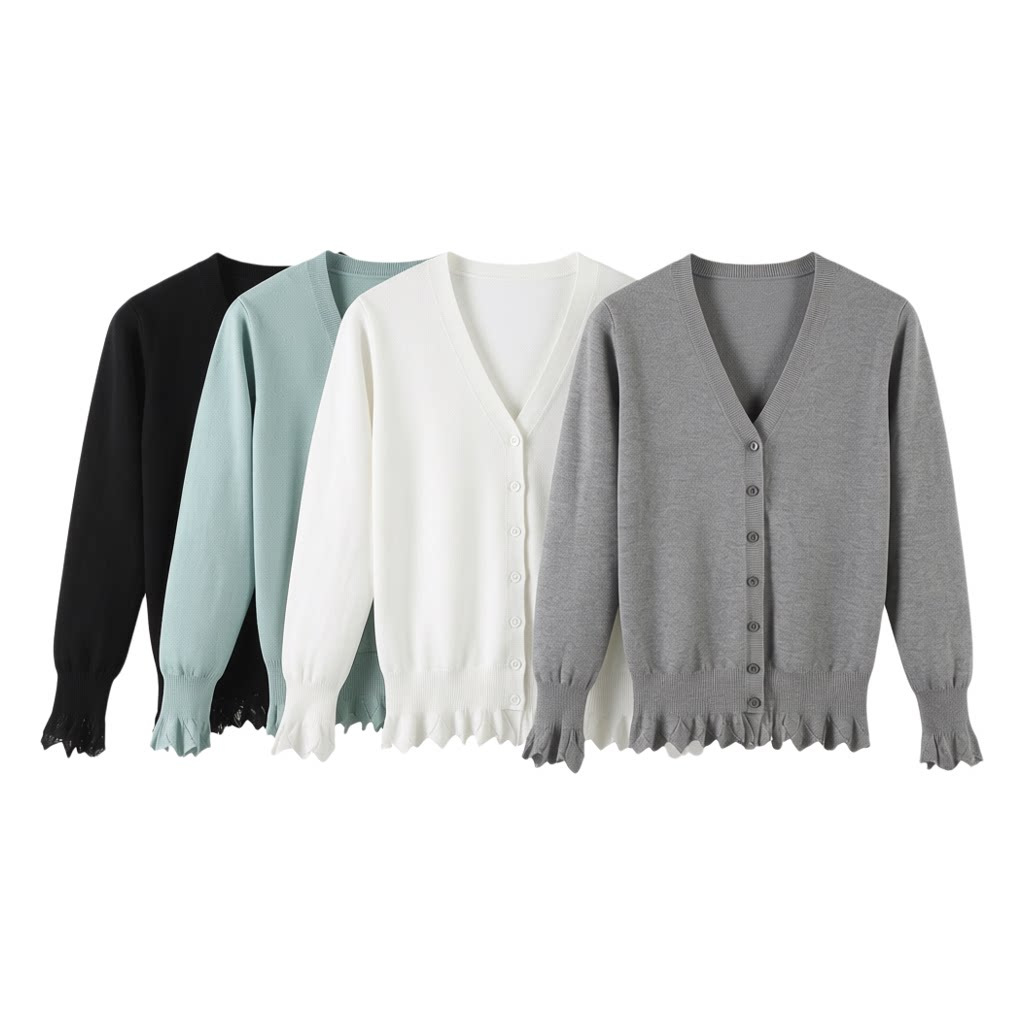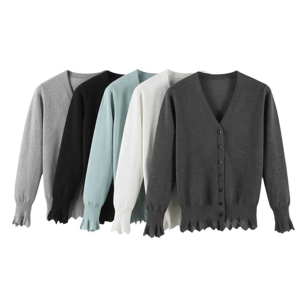 2023 봄과 가을 새로운 니트 아우터 가디건 여성용 얇은 에어컨 셔츠 긴 소매 V-넥 짧은 슬림핏 스웨터 재킷