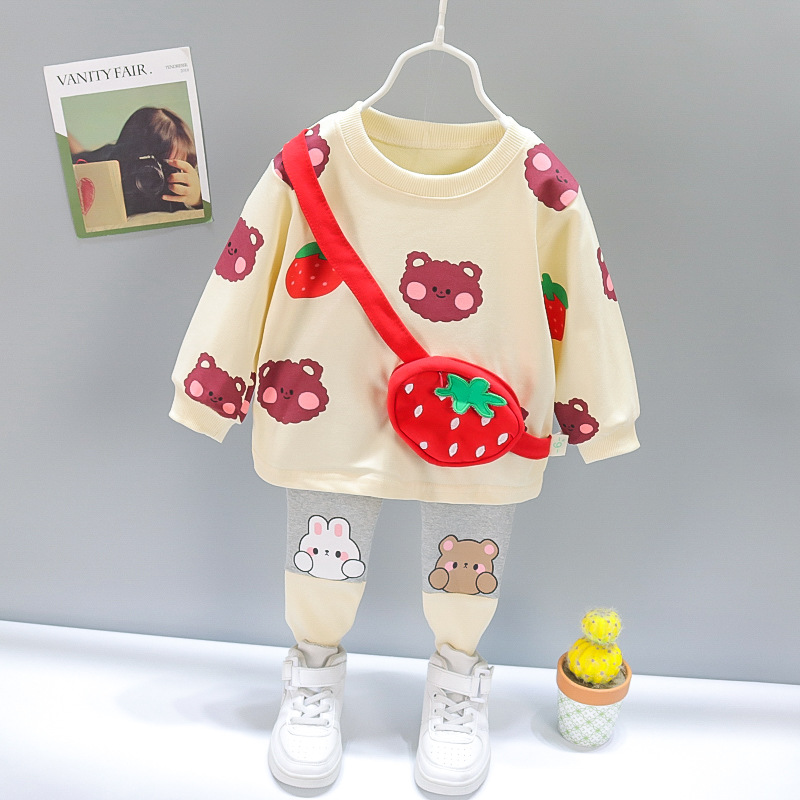 가을 2021 새로운 여자 한국 아동 의류 제조 업체 도매 세트 동물 과일 배낭의 새로운 한국어 버전스토어 가기