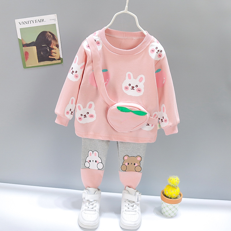 가을 2021 새로운 여자 한국 아동 의류 제조 업체 도매 세트 동물 과일 배낭의 새로운 한국어 버전