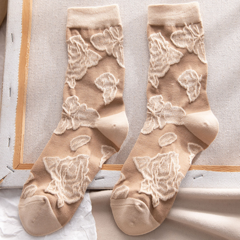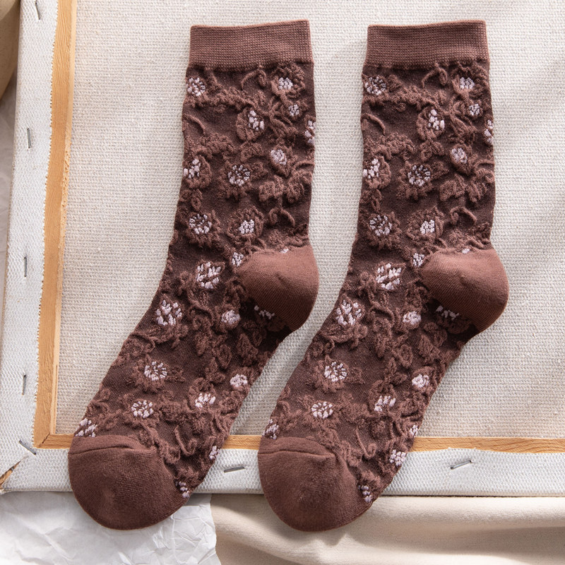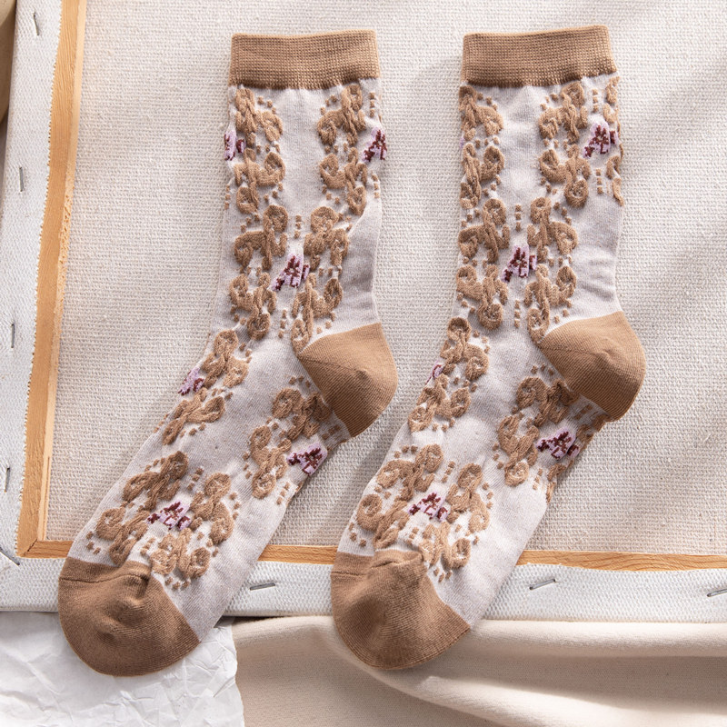 새로운 가을과 겨울 양말 여성 자수 유행 양말 빈티지 중간 길이 양말 양각 입체 패턴 캐주얼 양말 중국 스타일 양말스토어 가기
