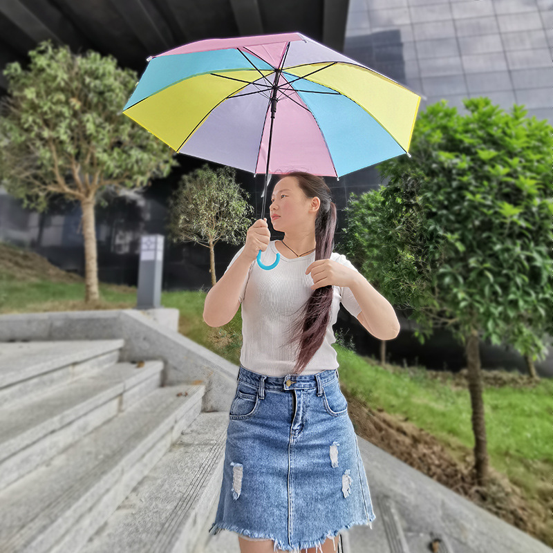 젖빛 무지개 어린이 투명 우산 소녀 고가의 긴 손잡이 자동 우산 학생 한국식 광고 실속 우산