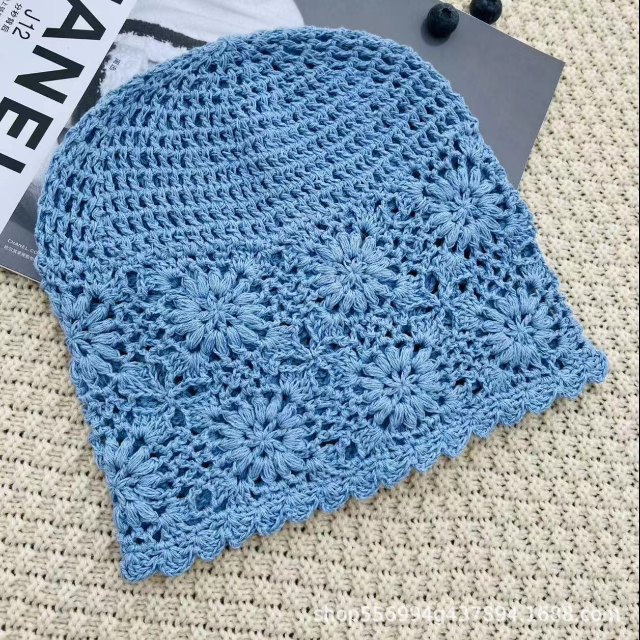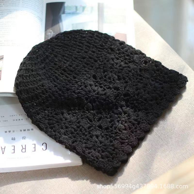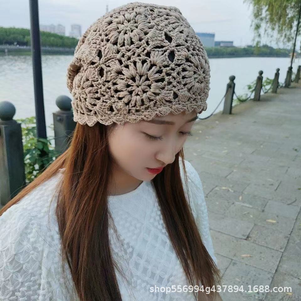 봄과 가을 얇은 중공 수제 여성용 후크 모자 Gouhua 니트 여성용 모직 모자 여름 그물 빨간 봉투 모자