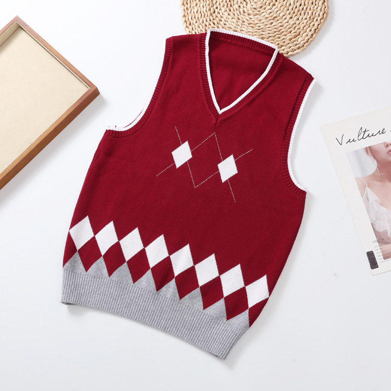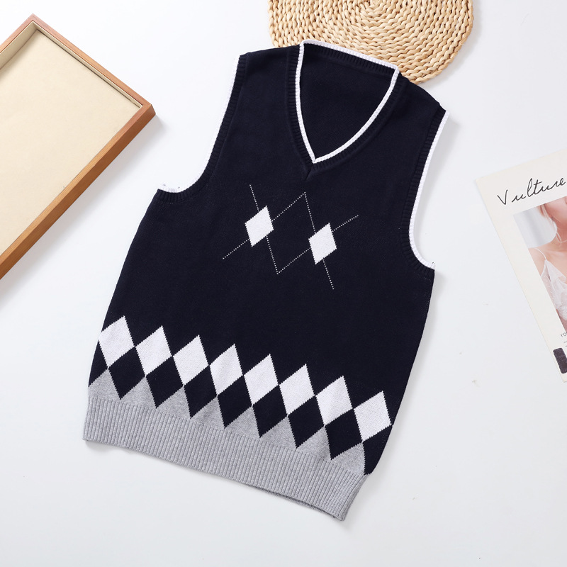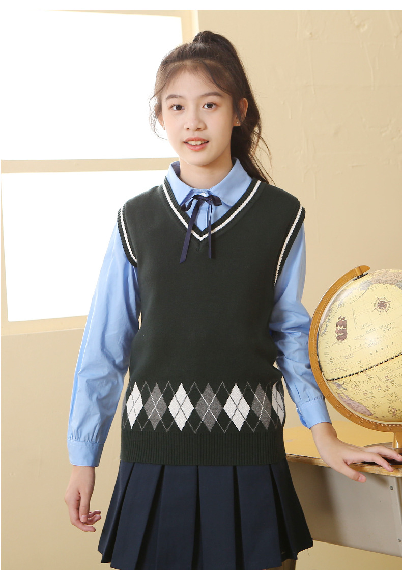 어린이용 조끼 면 니트웨어 남녀공용 풀오버 학교 유니폼 영국 스타일 조끼 학생 영국 학교 스타일