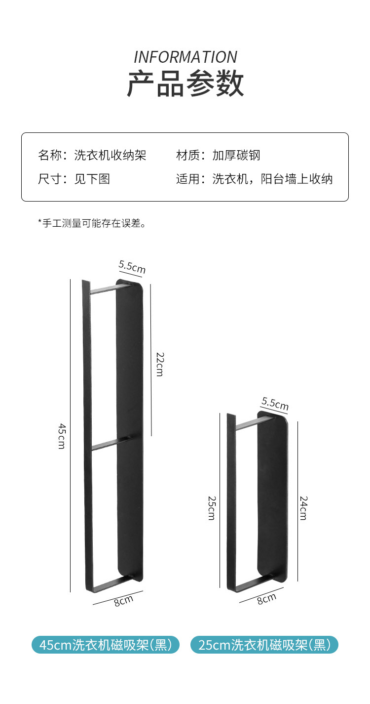 • 25cm 세탁기 마그네틱 흡입 랙 (블랙)
