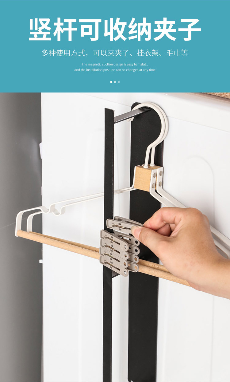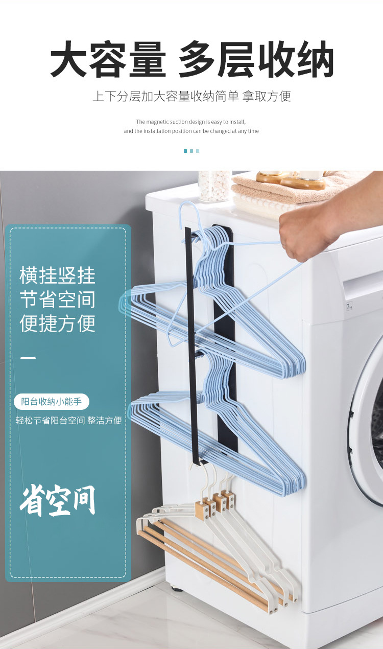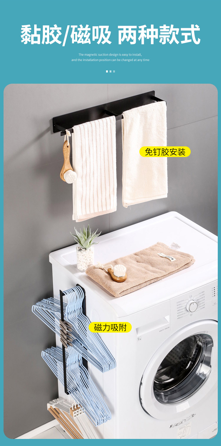 옷걸이 저장 아티팩트 욕실 공간 절약 세탁기 측면 마그네틱 후크 펀치 프리 발코니 구성 랙스토어 가기