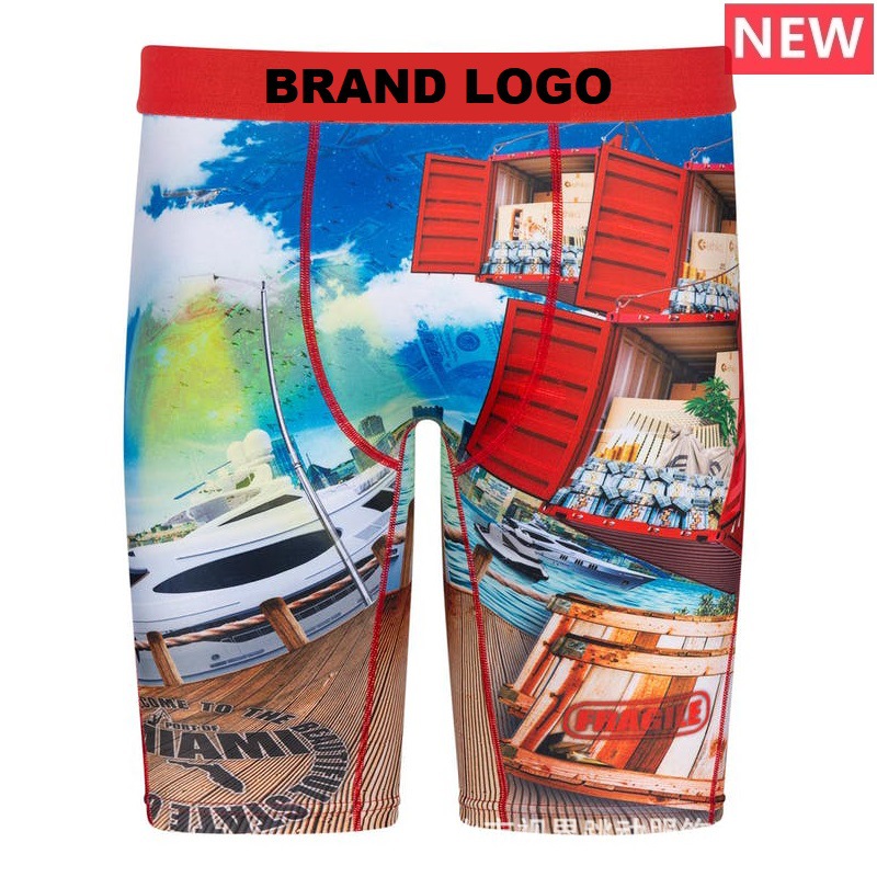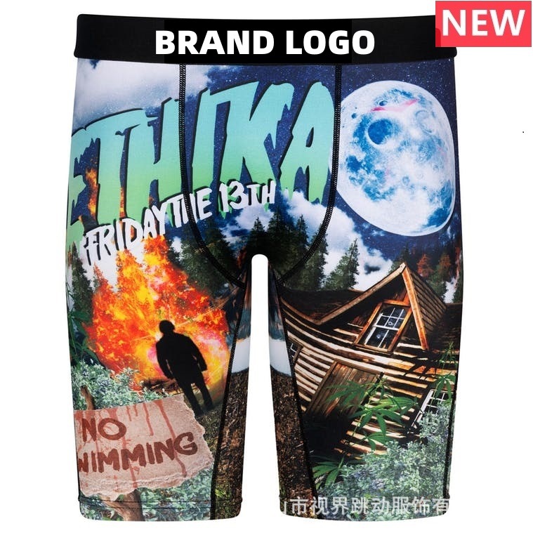 Ethika 같은 스타일 남성 속옷 복서 트렌디 반바지 아이스 실크 프린트 스포츠 속건성 확장 바닥 중간 바지스토어 가기