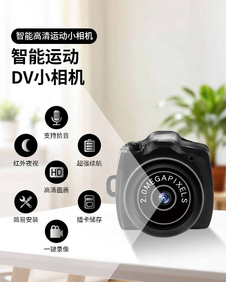 국경 간 Y2000 카메라 소형 카메라 야외용 고화질 스마트 무선 스포츠 카메라 적외선 야간 투시경 DV 미니스토어 가기