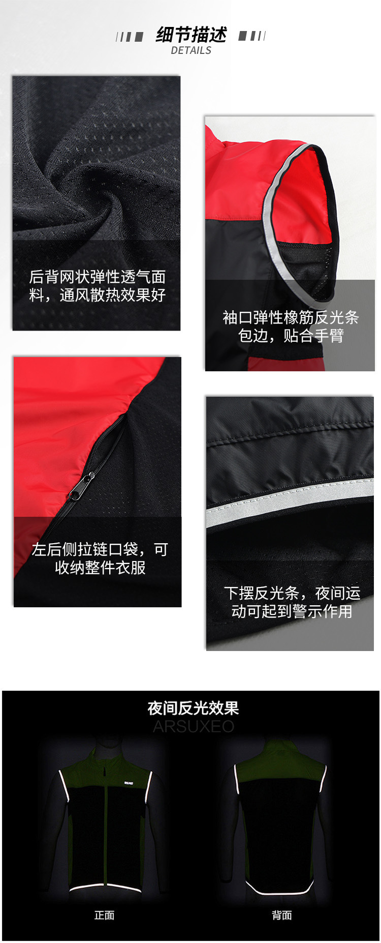 Function(功能) Breathable(透气) / Quick Dry(快干) / Anatomic Design(三维立体剪裁) / Back Pocket(后袋) /Wicking(吸湿排汗)