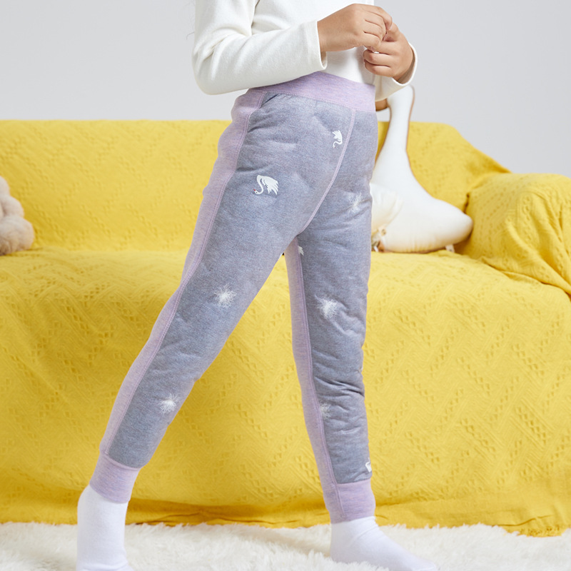 Belbaby 소년과 소녀를위한 새로운 어린이 기모 두꺼운 다운 바지 원피스 벨벳 내부 착용 따뜻한 바지 줄 지어 바지