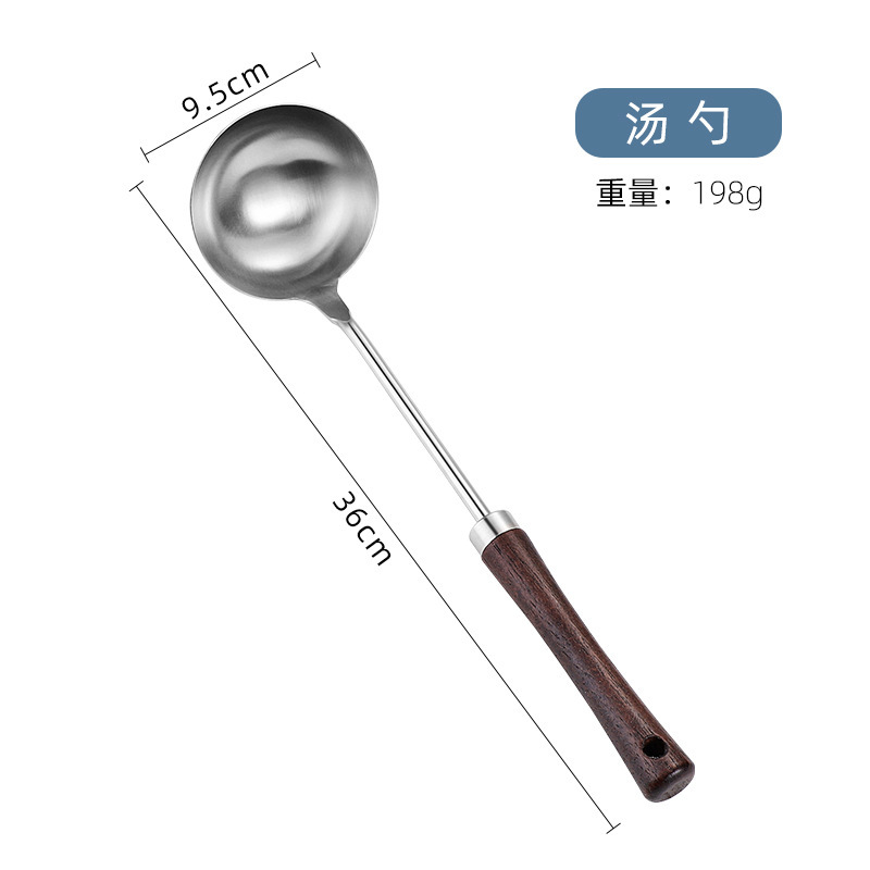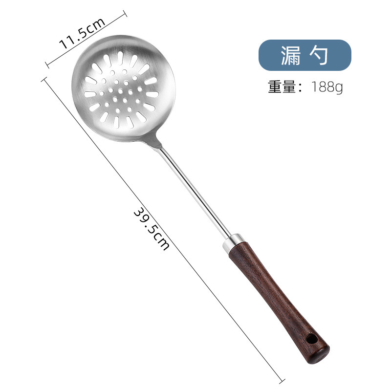 스테인리스 주방용품 세트 대형 국자 레트로 나무 손잡이 요리용 주걱 거름망 주방 도구 도매 일상용스토어 가기