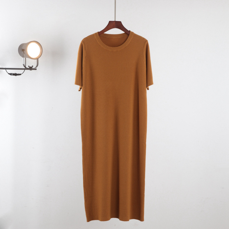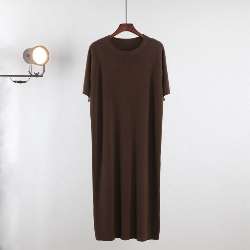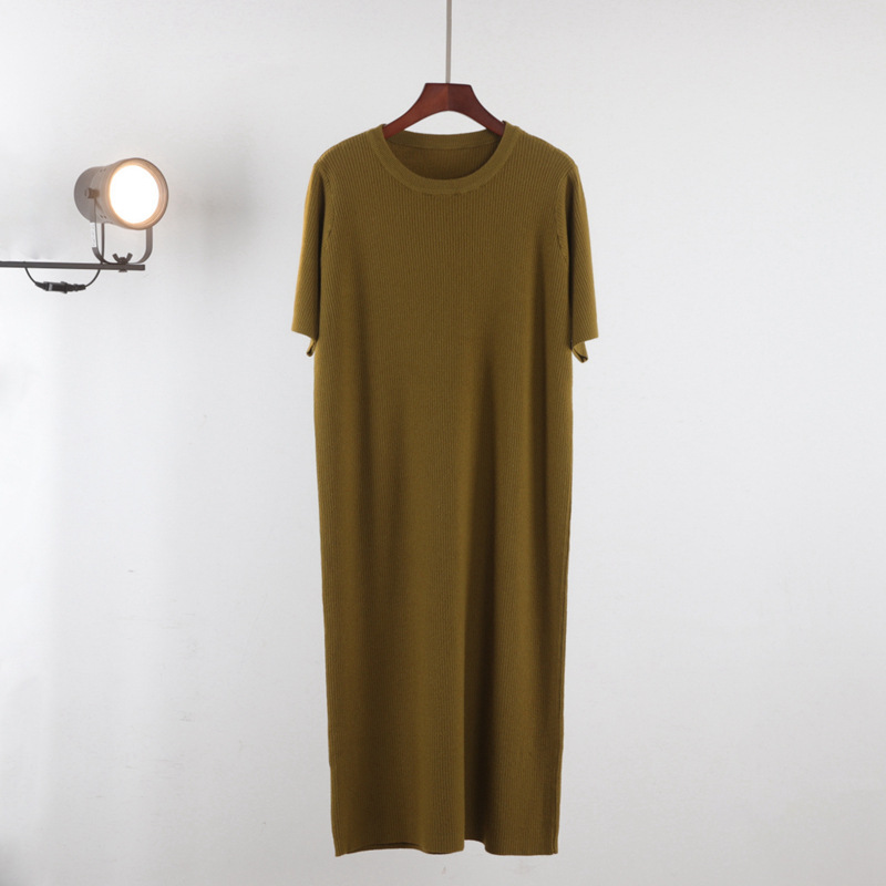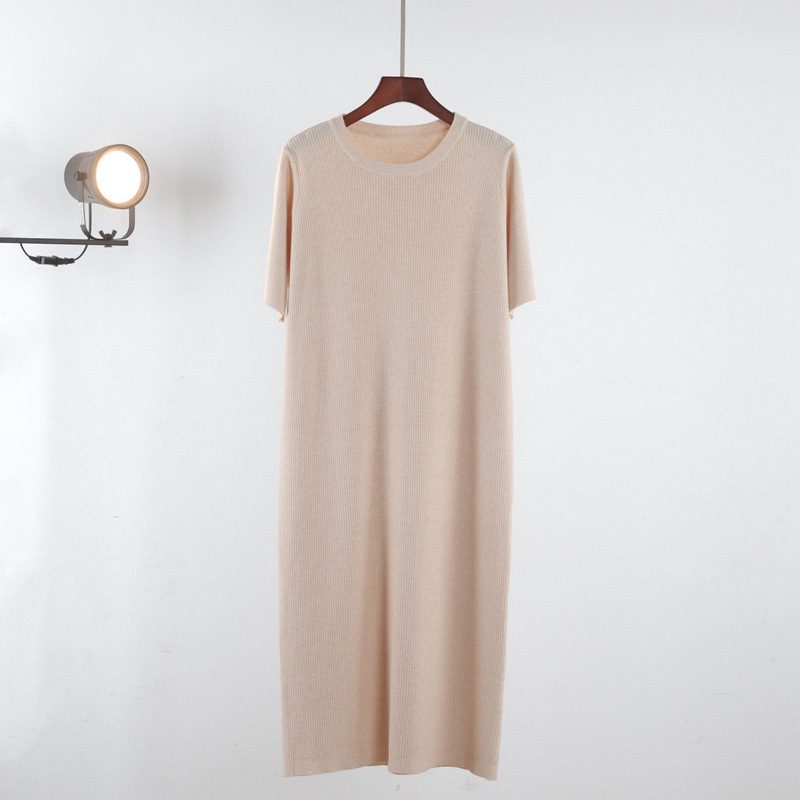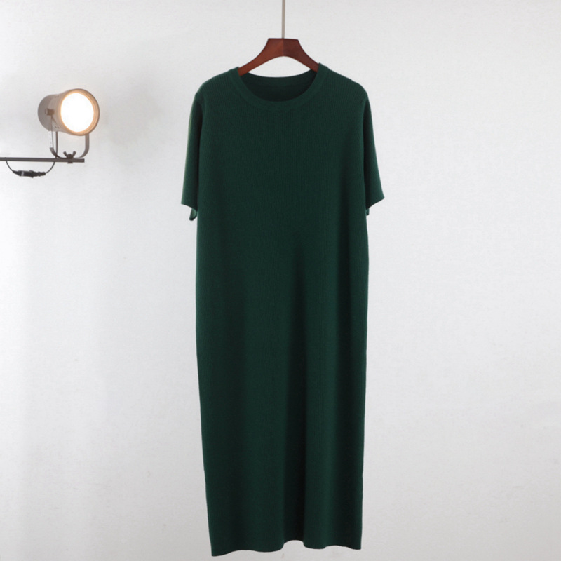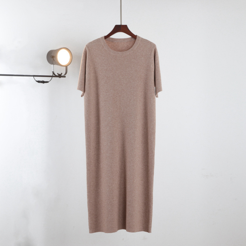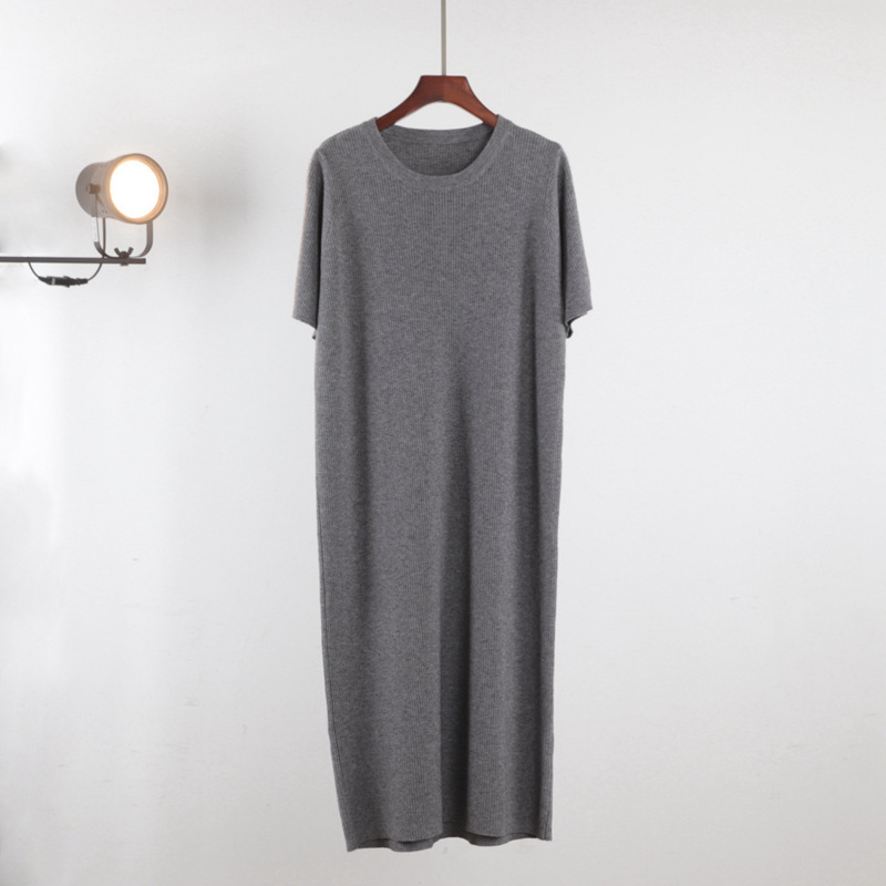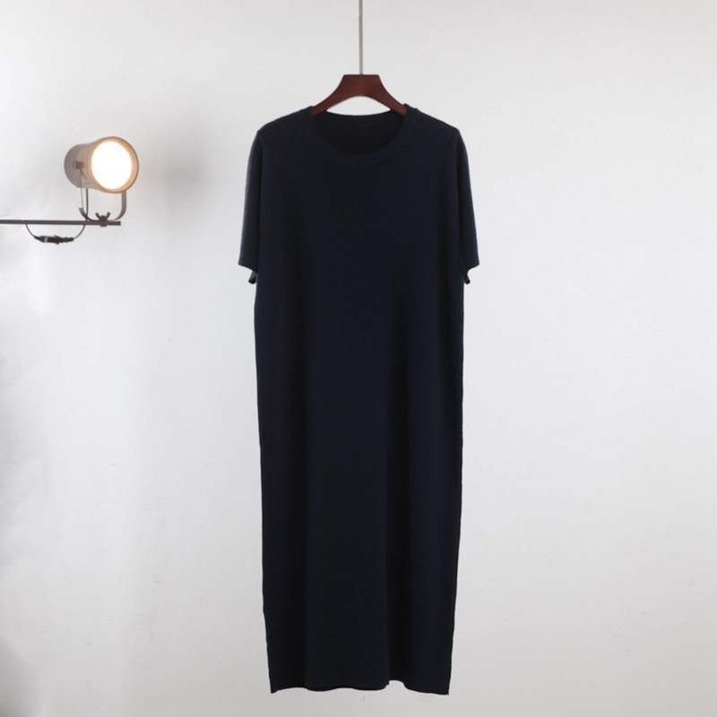 울 혼방 니트 드레스 여성용 반팔 루즈핏 2026 봄 가을 롱 기장 무릎길이 우아한 울 스웨터 드레스스토어 가기