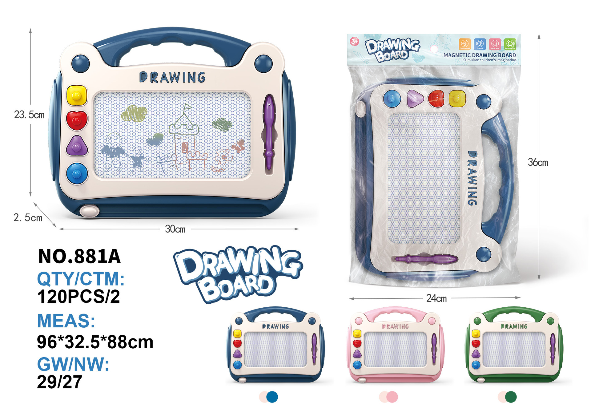 • 881BOPP 가방 마그네틱 대형 드로잉 보드(브래킷 버전) 색상 비고