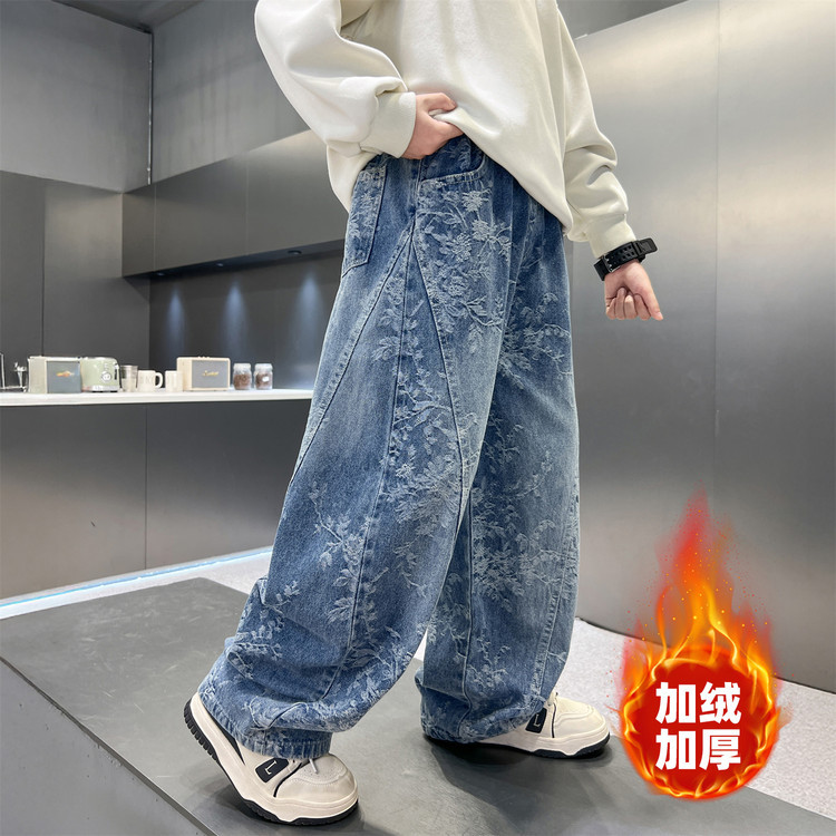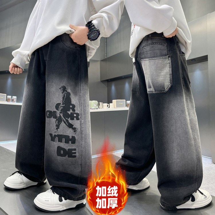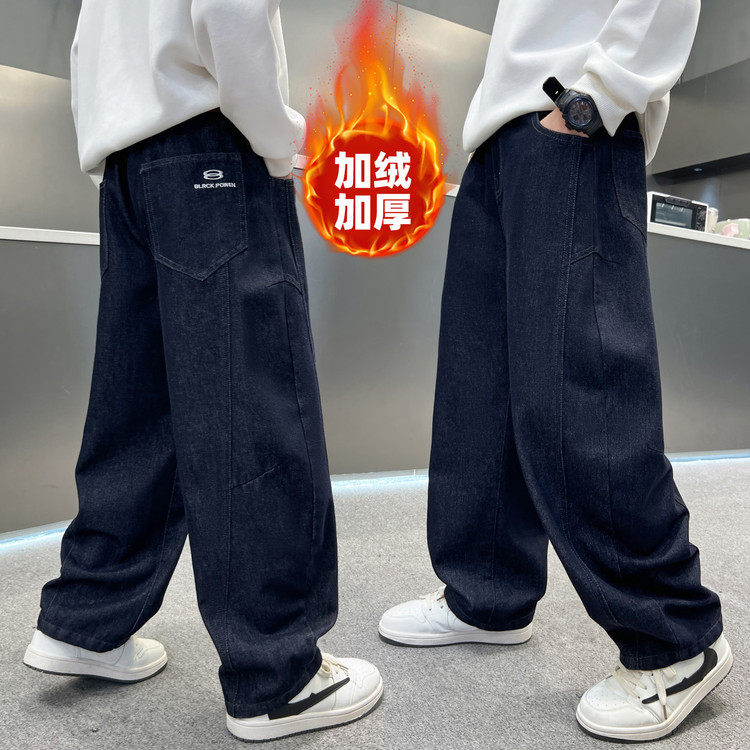 남아용 기모 데님 팬츠 가을 겨울 2025 신상 아동 겨울용 기모 안감 두꺼운 바지 남자아이 겨울옷 트렌디