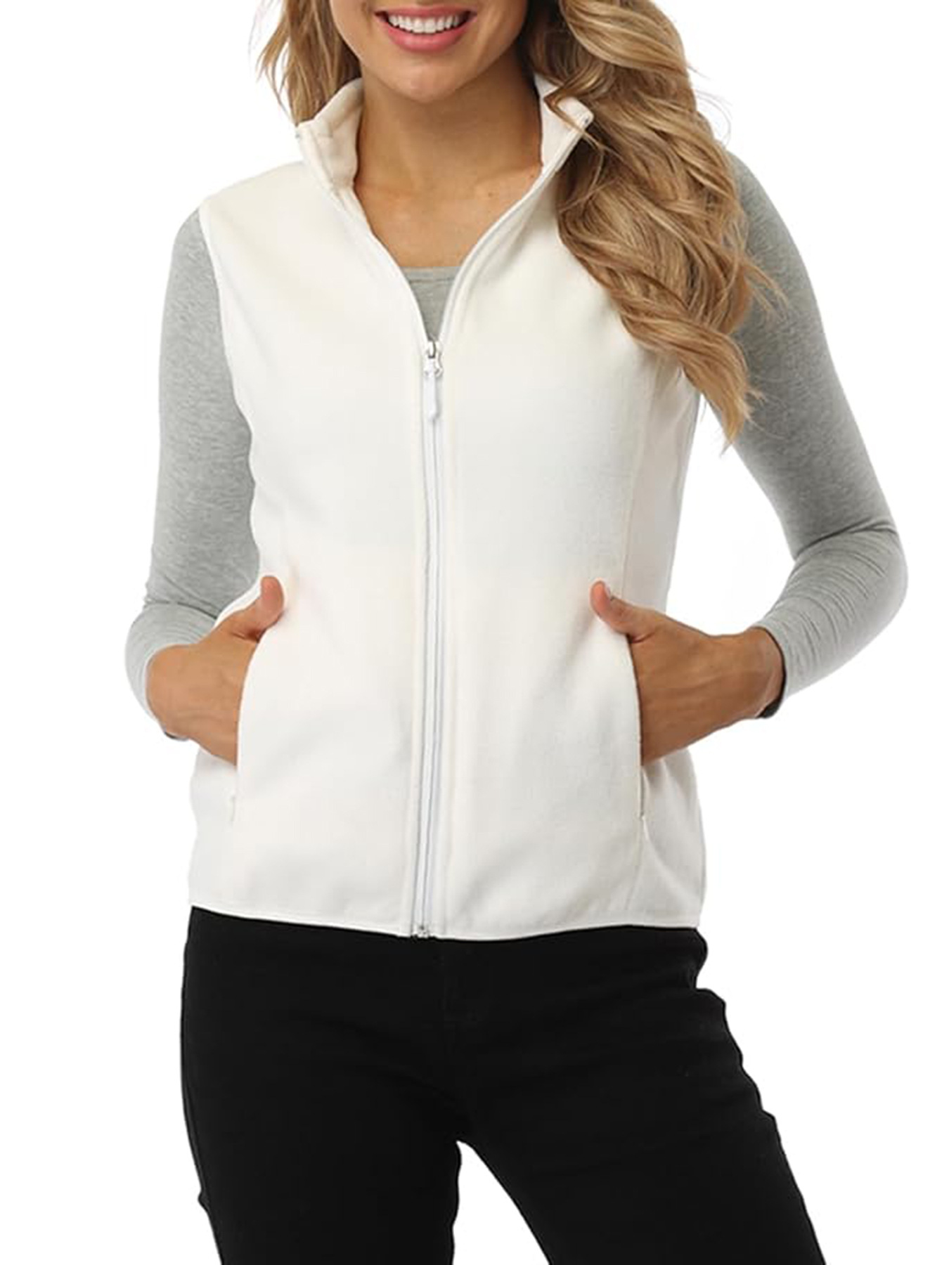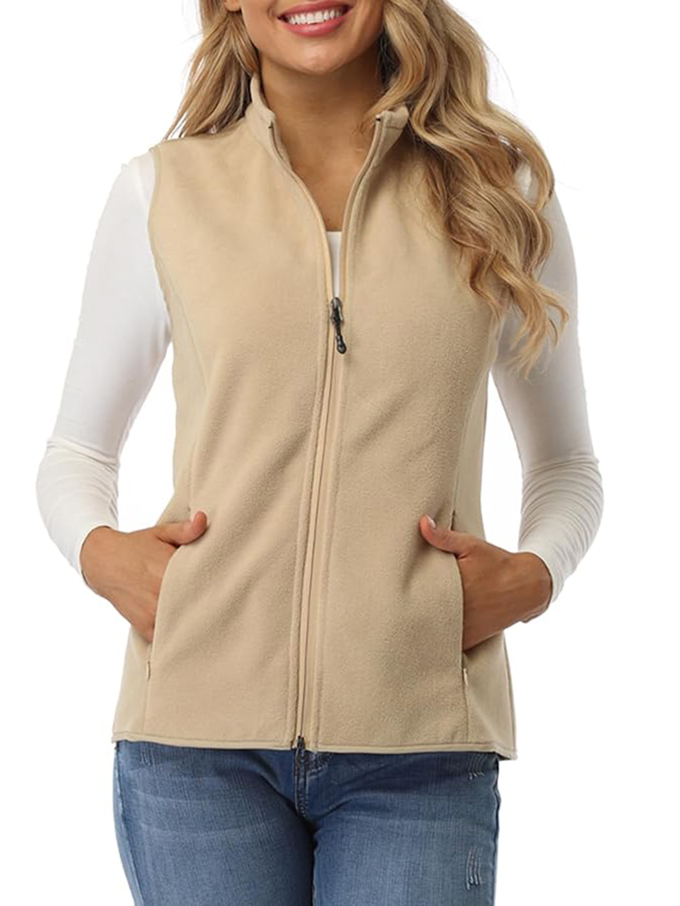 크로스 보더 아마존 여성용 폭발적인 유럽과 미국 스타일 양털 조끼 여성용 수직 칼라 양털 조끼가있는 부드러운 민소매 재킷스토어 가기