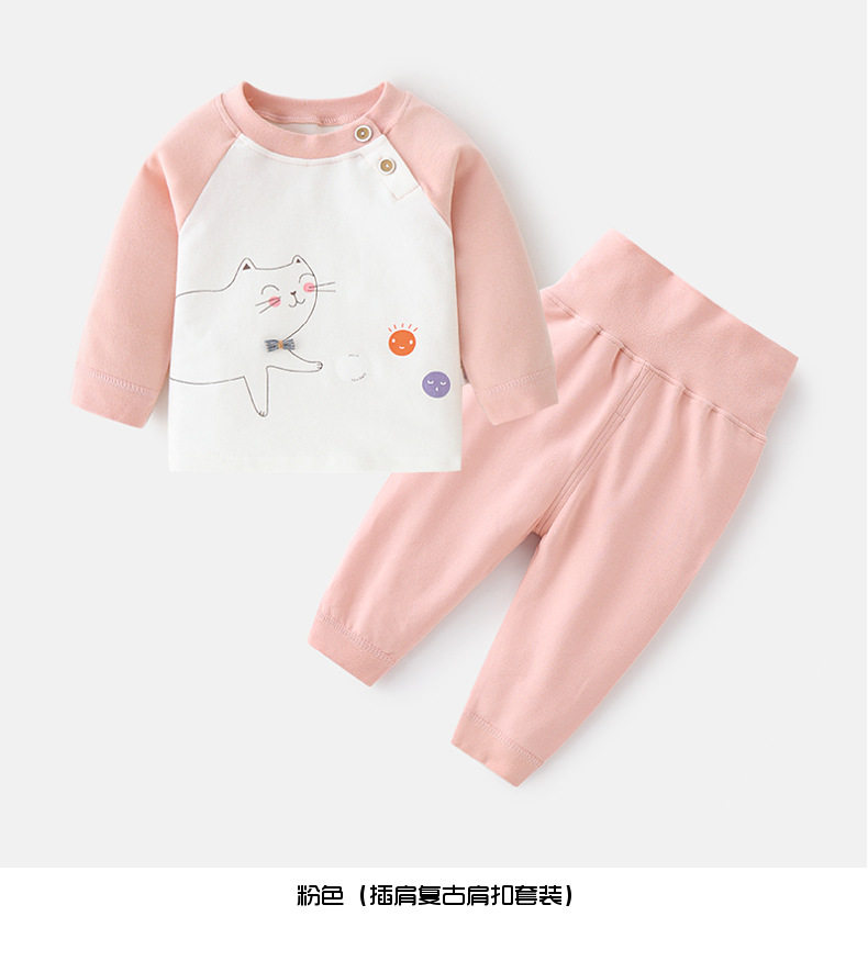 아기 속옷 세트 어린이 가을과 겨울 기본 가을 옷 0-3 세 아기의 라글란 인쇄 투피스 하이 웨이스트 가을 바지