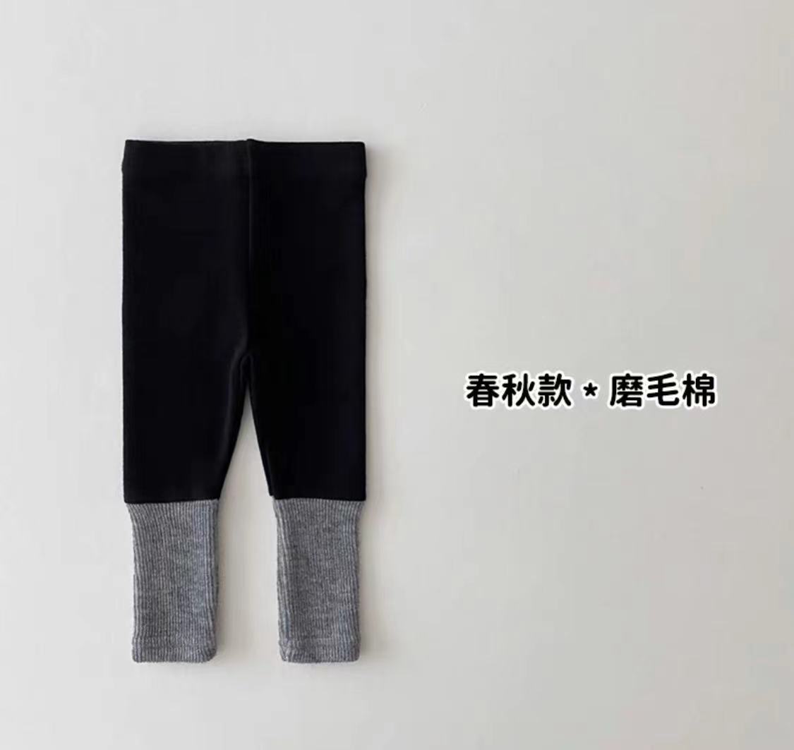 아동용 아우터 레깅스 한국 아동복 가을 니트 탄성 하이 웨이스트 배색 바지 남학생과 여학생을 위한 신축성 있는 허리