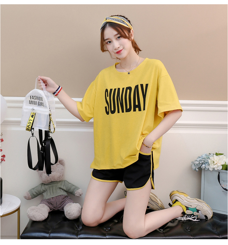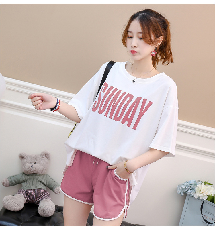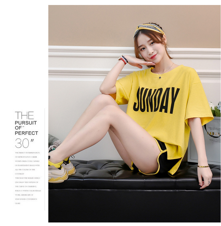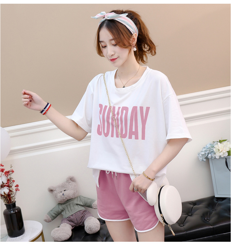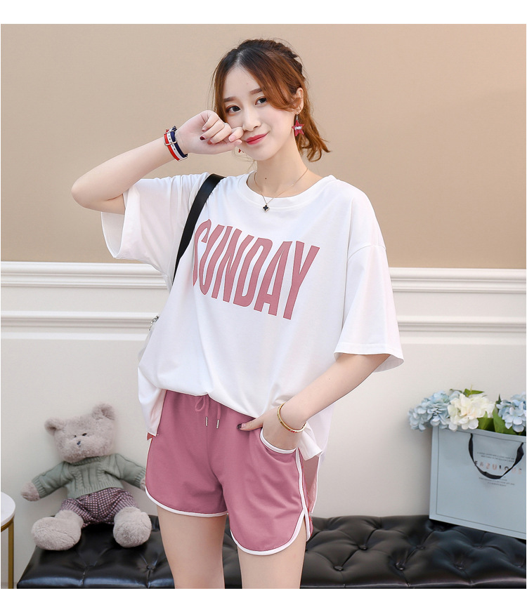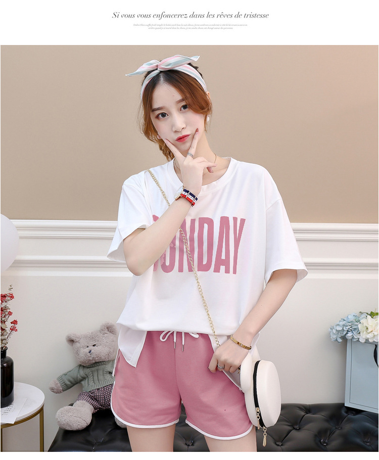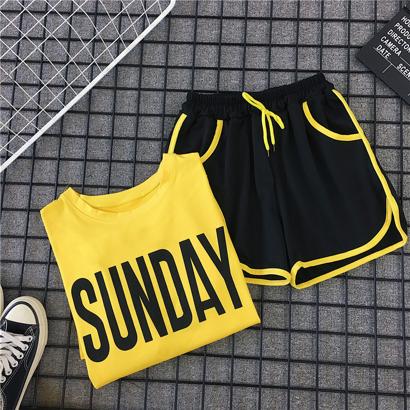 대외 무역 실행 캐주얼 스포츠웨어 세트 여성 여름 새로운 여성 의류 한국 패션 짧은 소매 반바지 투피스 세트스토어 가기