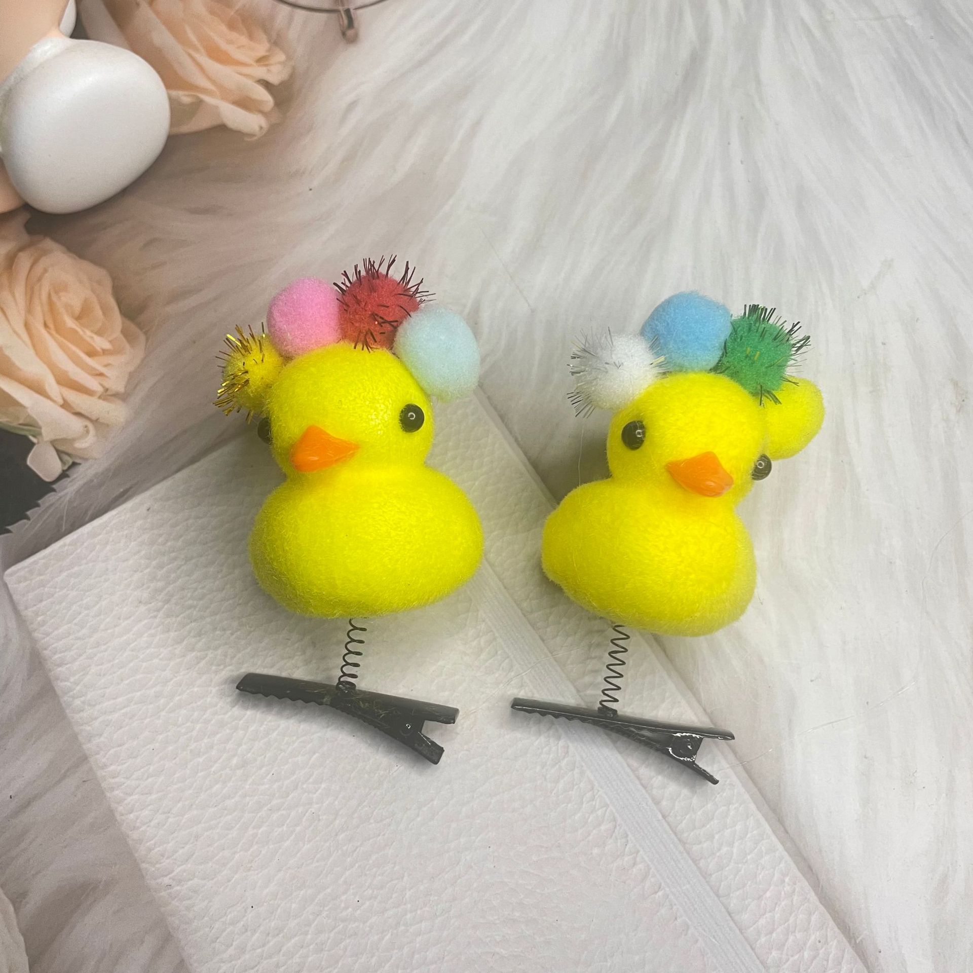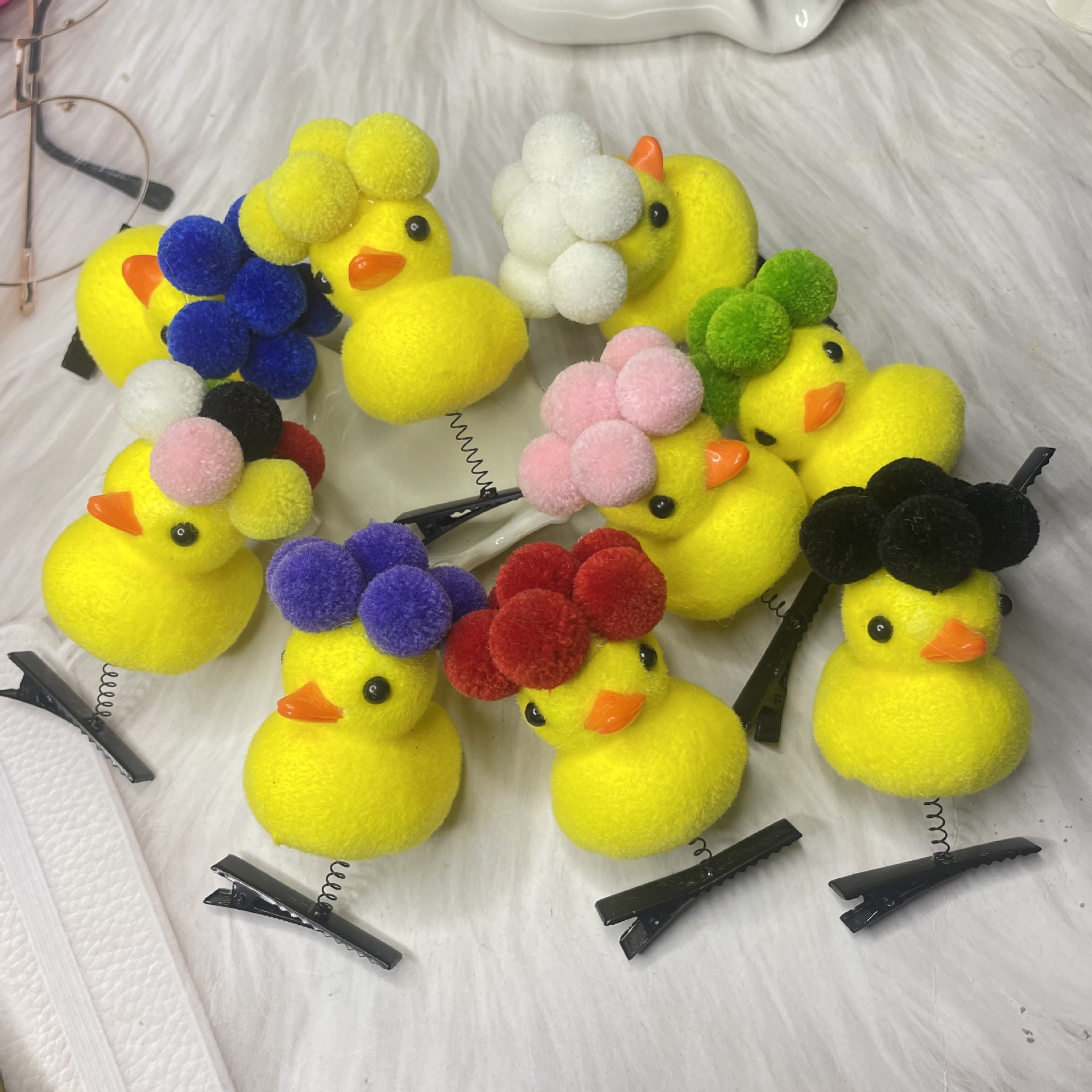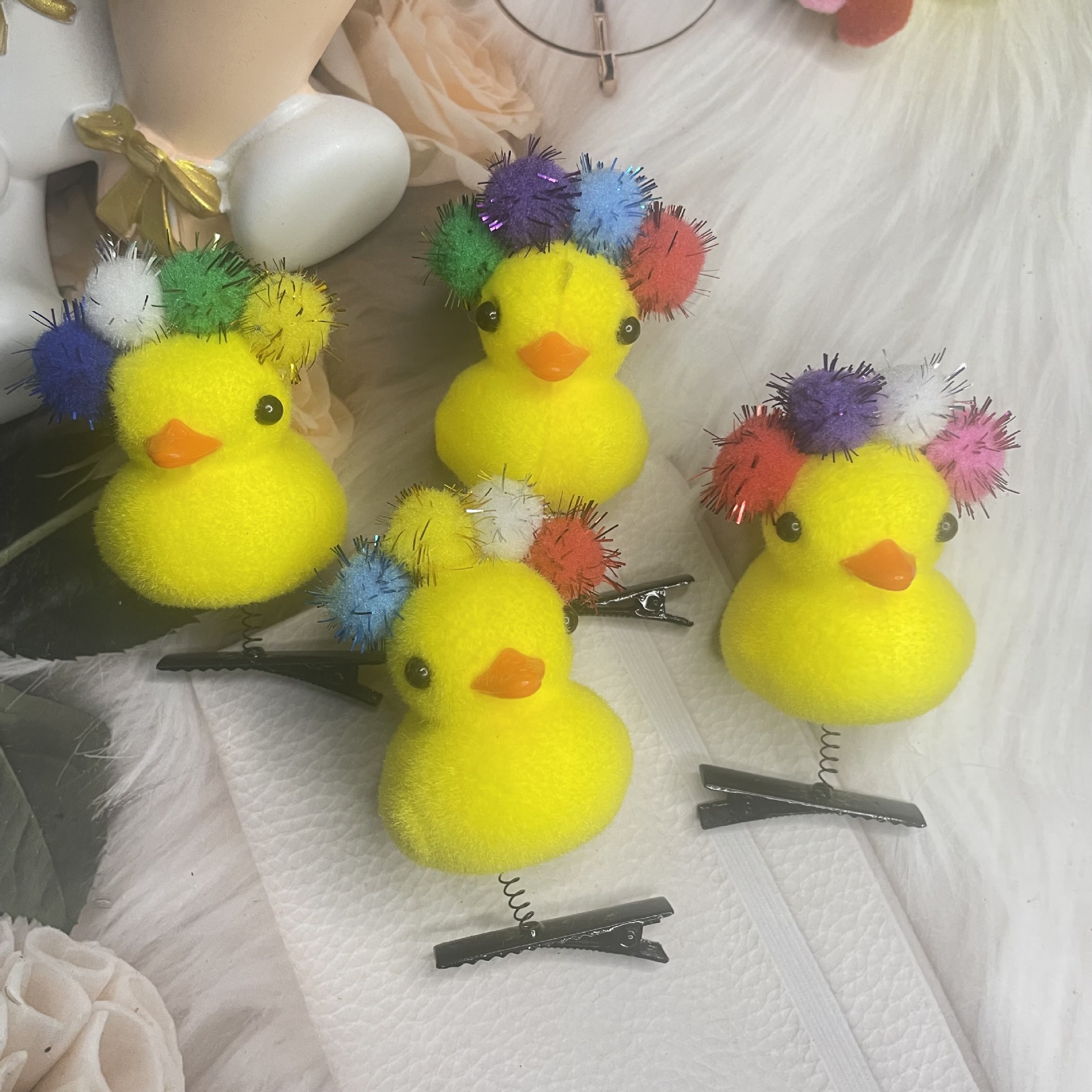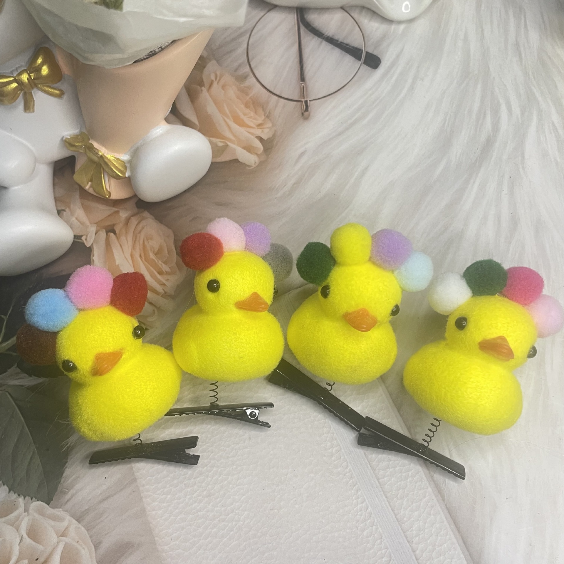 • 모피 공 노란 오리 머리핀