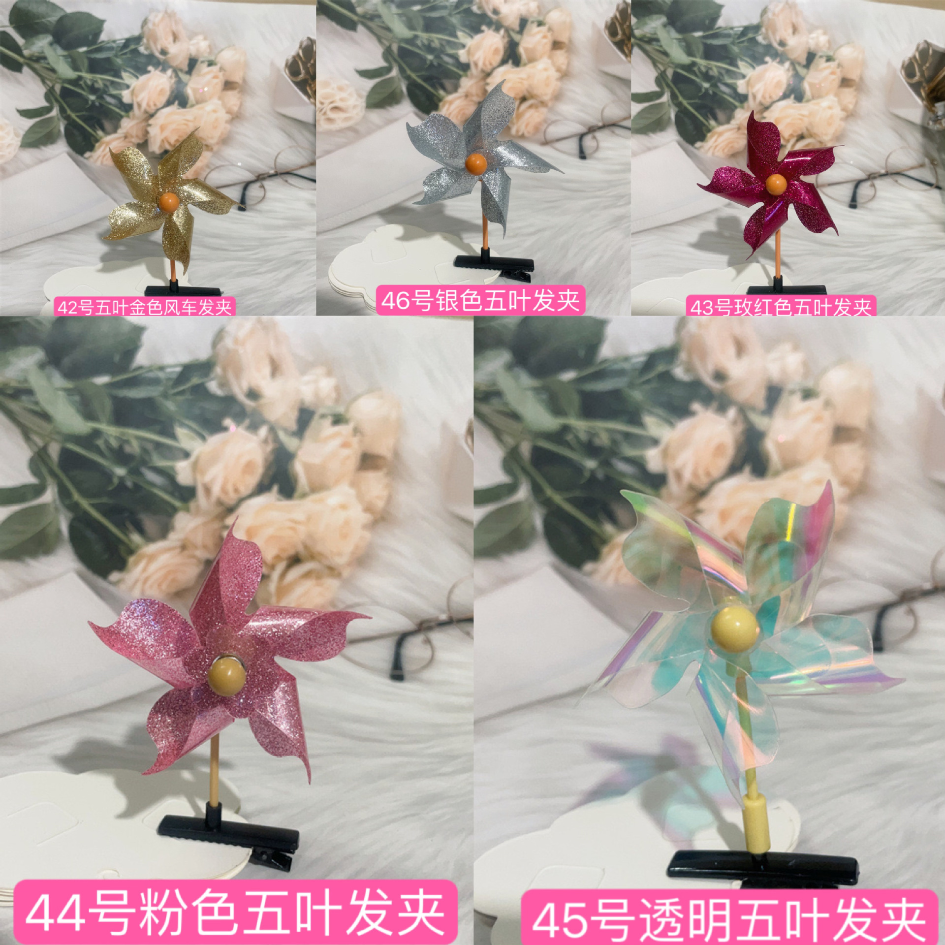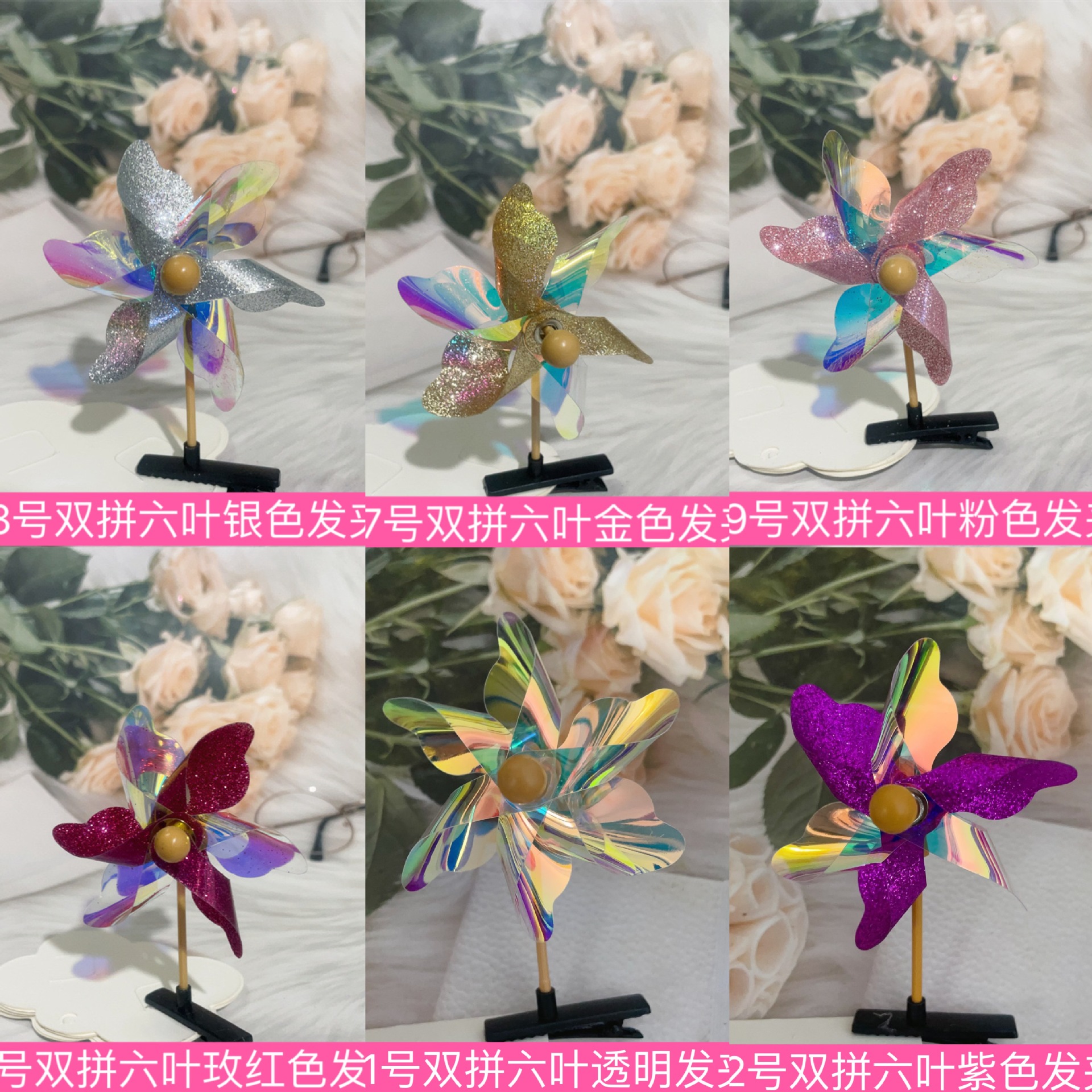 • 레이저 6 잎 풍차 머리핀
