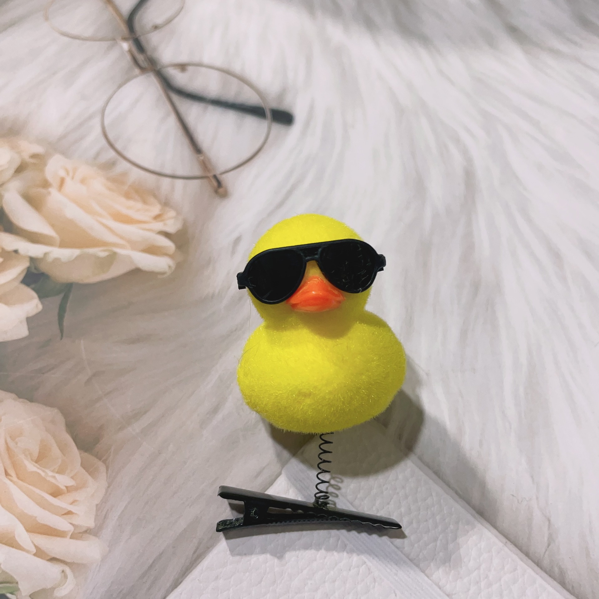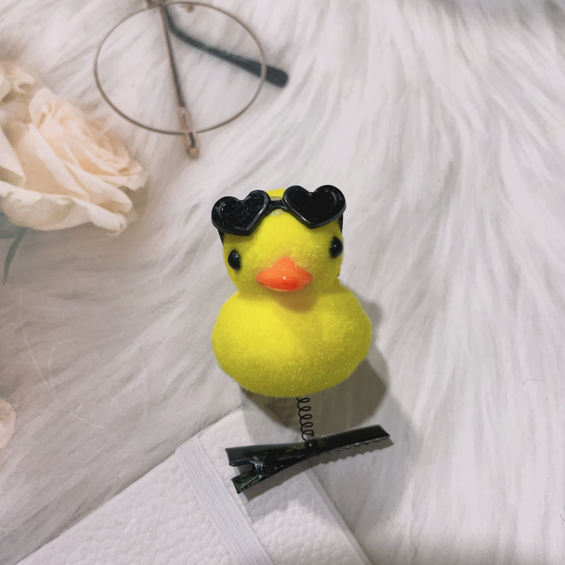 • 사랑 선글라스 노란색 오리 머리핀
