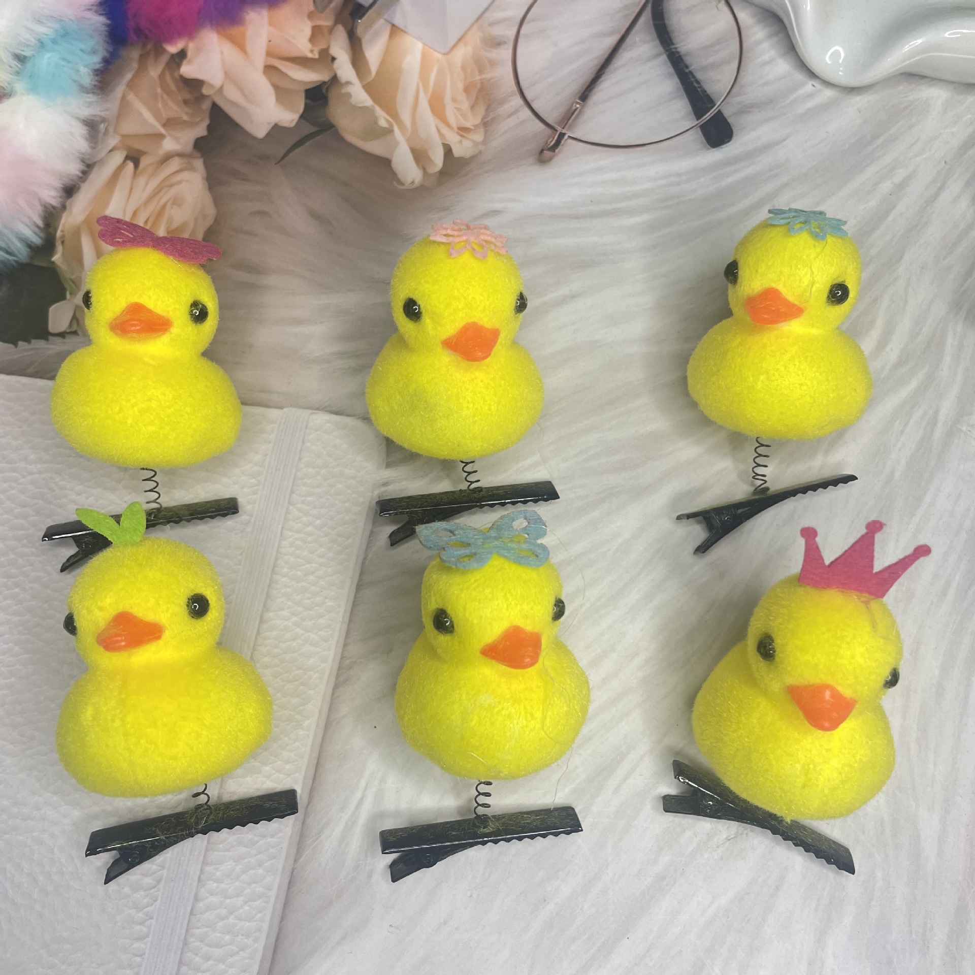 • 장미 작은 노란 오리 머리핀