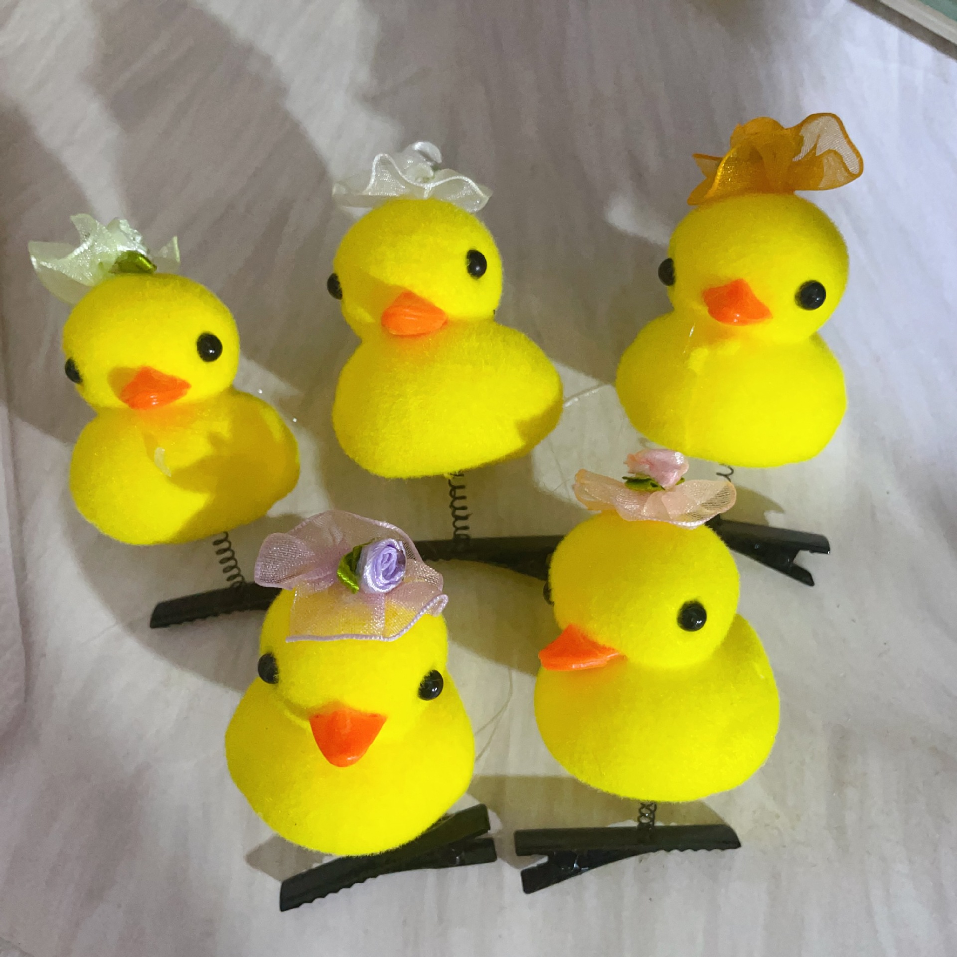 • 밝은 실크 노란 오리 머리핀