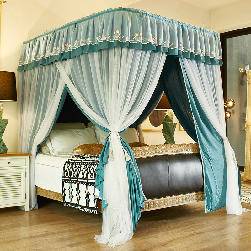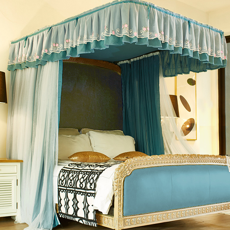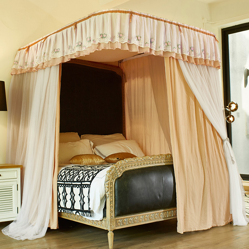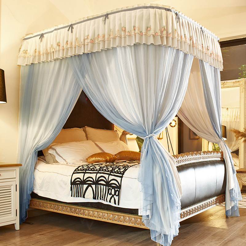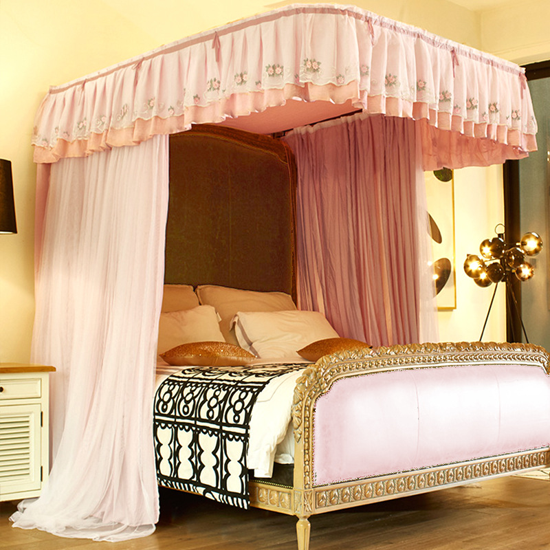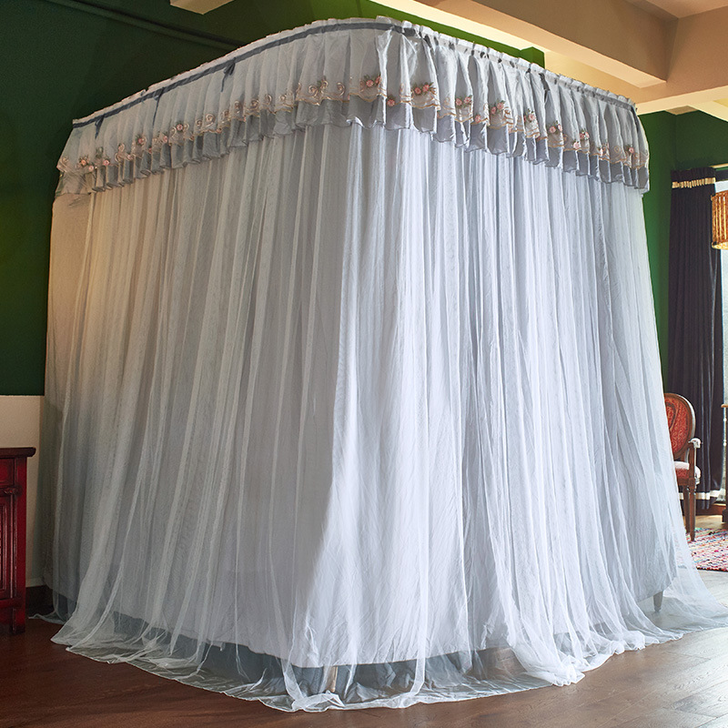 2 층 가이드 레일 U 자형 음영 천 모기장 이중 트랙 겨울과 여름 이중 사용 두꺼운 따뜻한 1.8m 침대 커튼 침실 침대 커튼