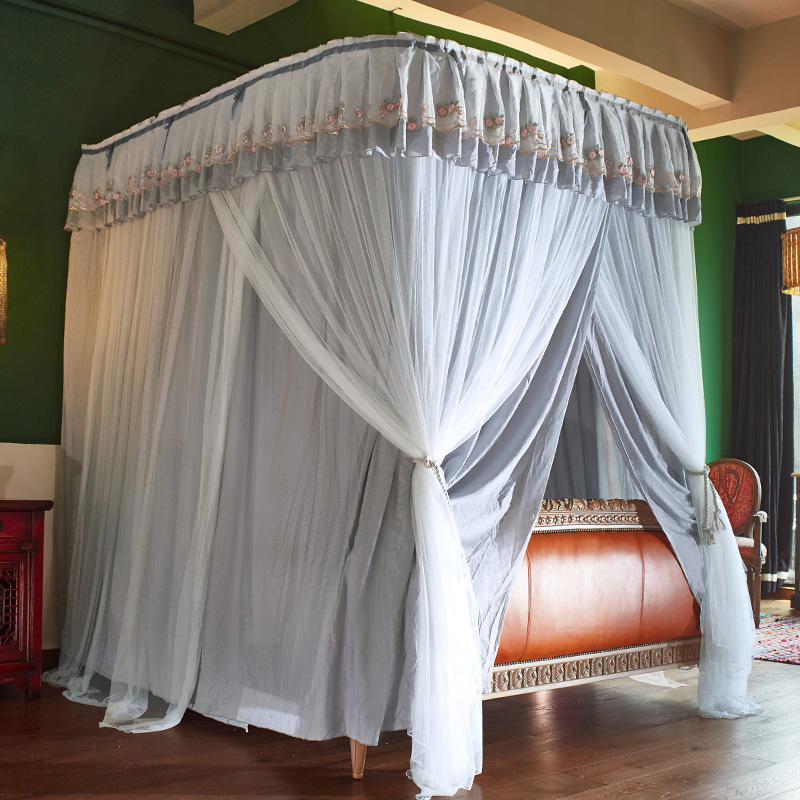 • ☆★이중 레이어 차광 침대 커튼 모기장 - 회색 천과 흰색 거즈, 특수 두꺼운 레일 브래킷 포함☆★