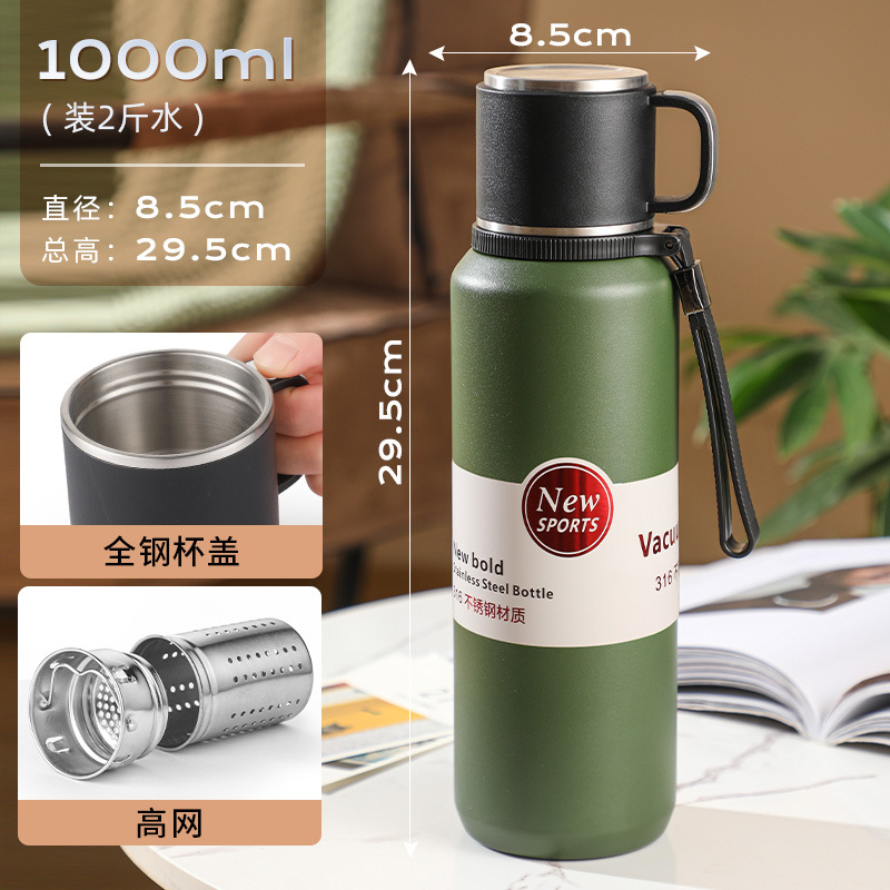 대용량 보온병 316 스테인리스 남성용 차 물 분리형 티컵 여성용 가정용 컵 야외용 올스틸 주전자