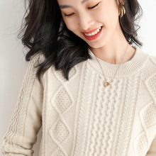 秋冬新款美丽奴羊毛衫套头女宽松圆领短款针织长袖毛衣外套上衣