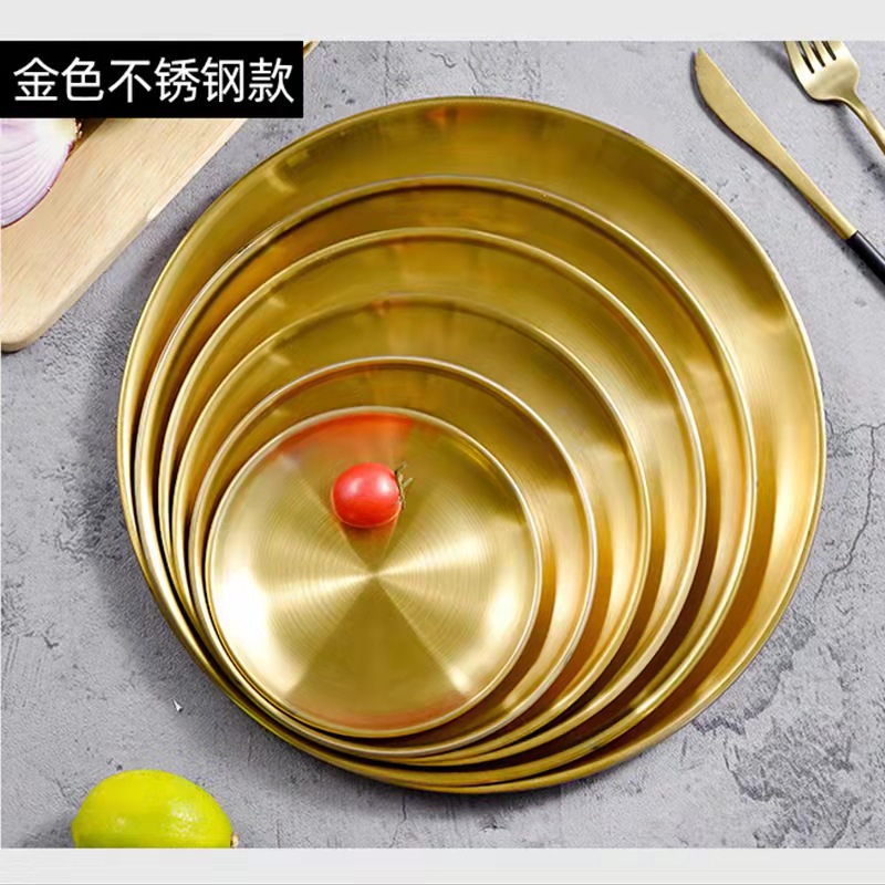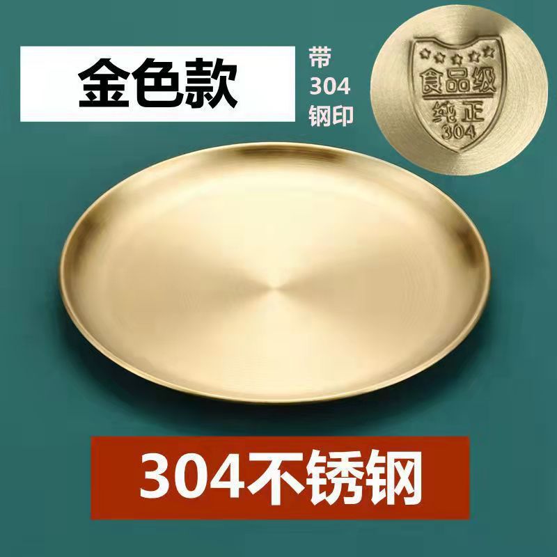 304 스테인레스 바베큐 접시 두꺼운 한국식 디스크 금도금 스테이크 서양 음식 접시 스낵 홀더 다목적 접시 도매스토어 가기