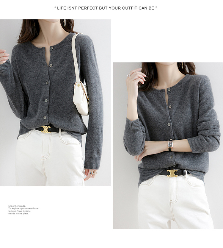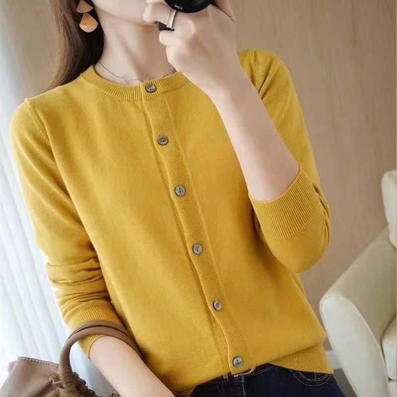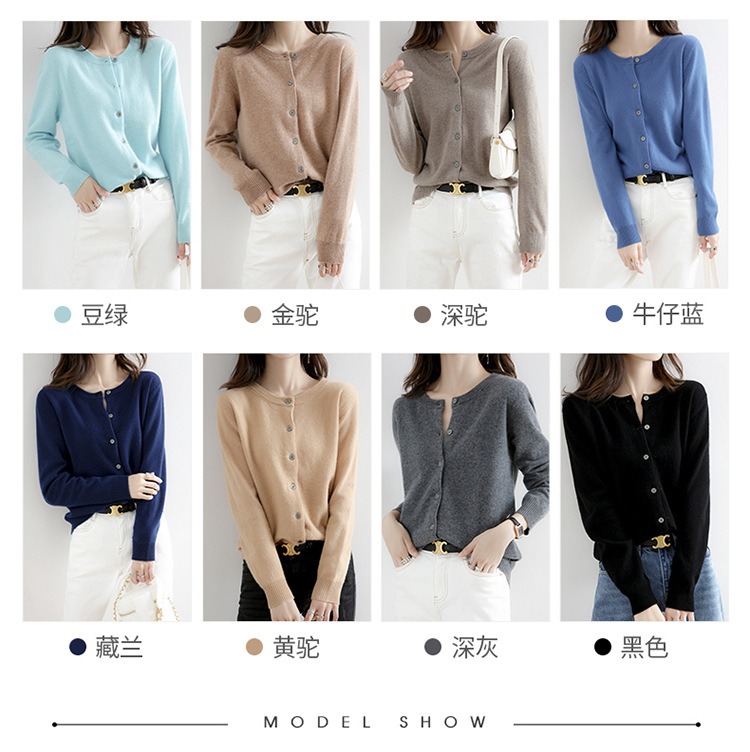 니트 카디건 여성 가을 의류 2025 새로운 얇은 라운드 넥 스웨터 재킷 봄, 가을 짧은 외부 탑스토어 가기