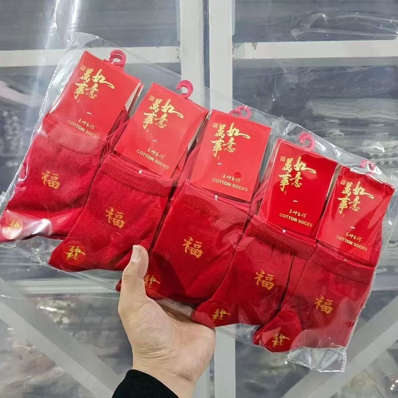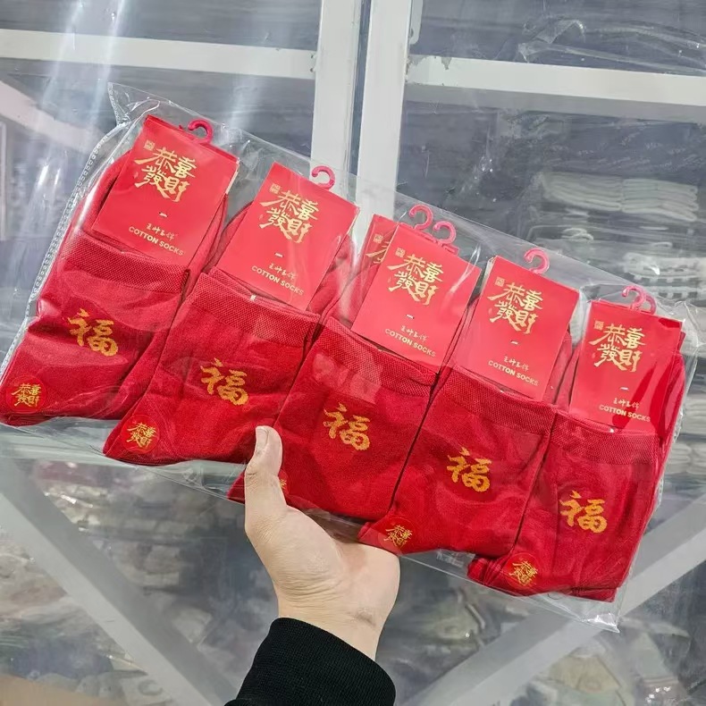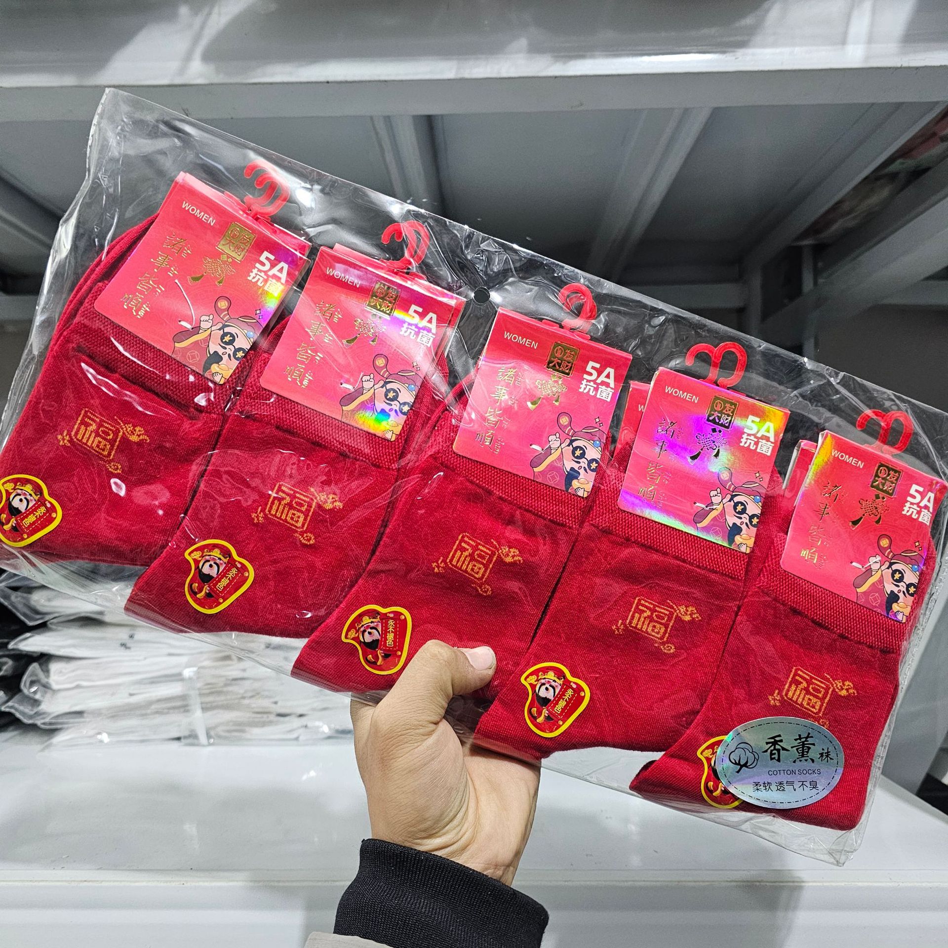 빨간 양말 결혼식 축제 양말 가을과 겨울 커플 남자와 여자 튜브 하이 웨이스트 올해 빨강 럭키 워드 코튼 양말 도매스토어 가기