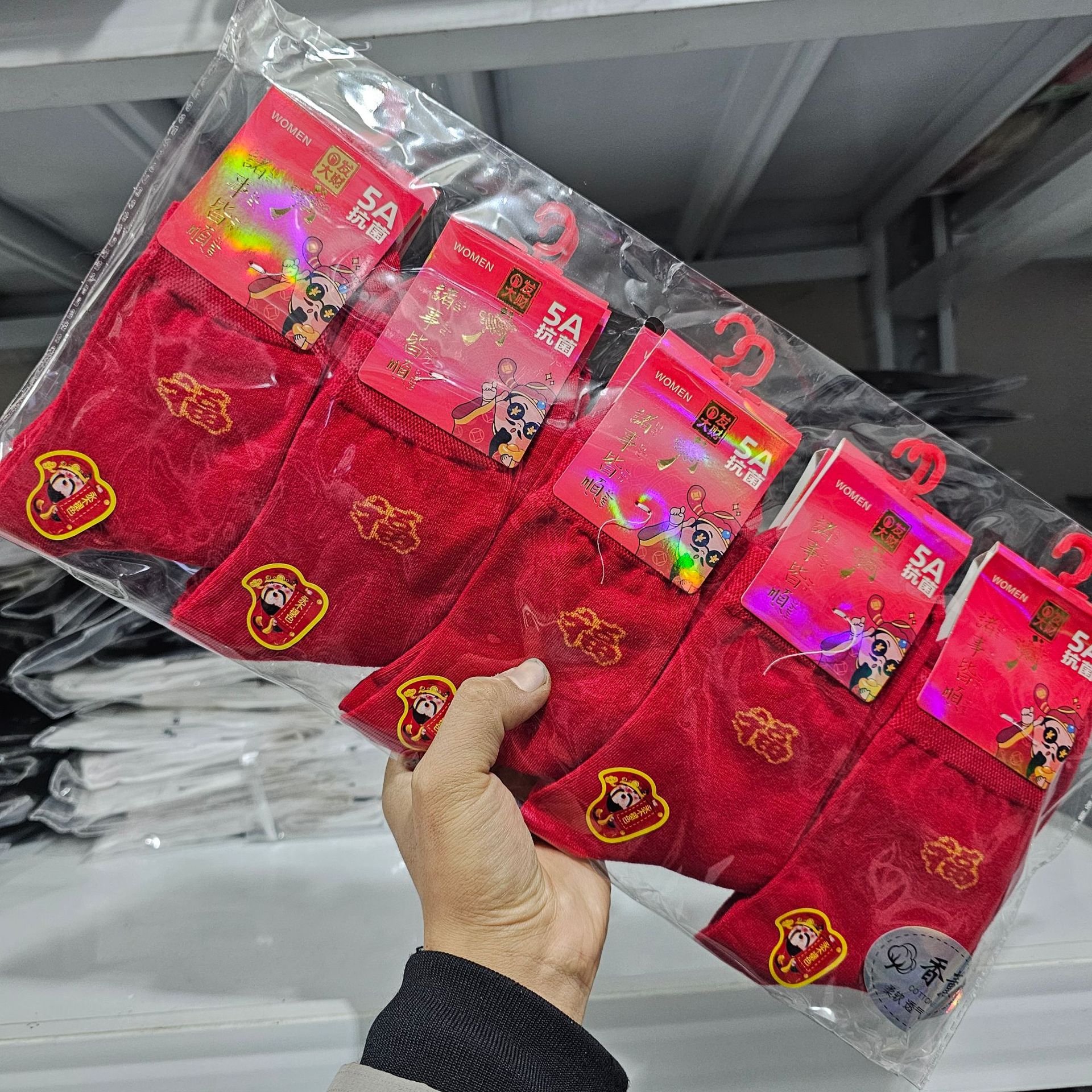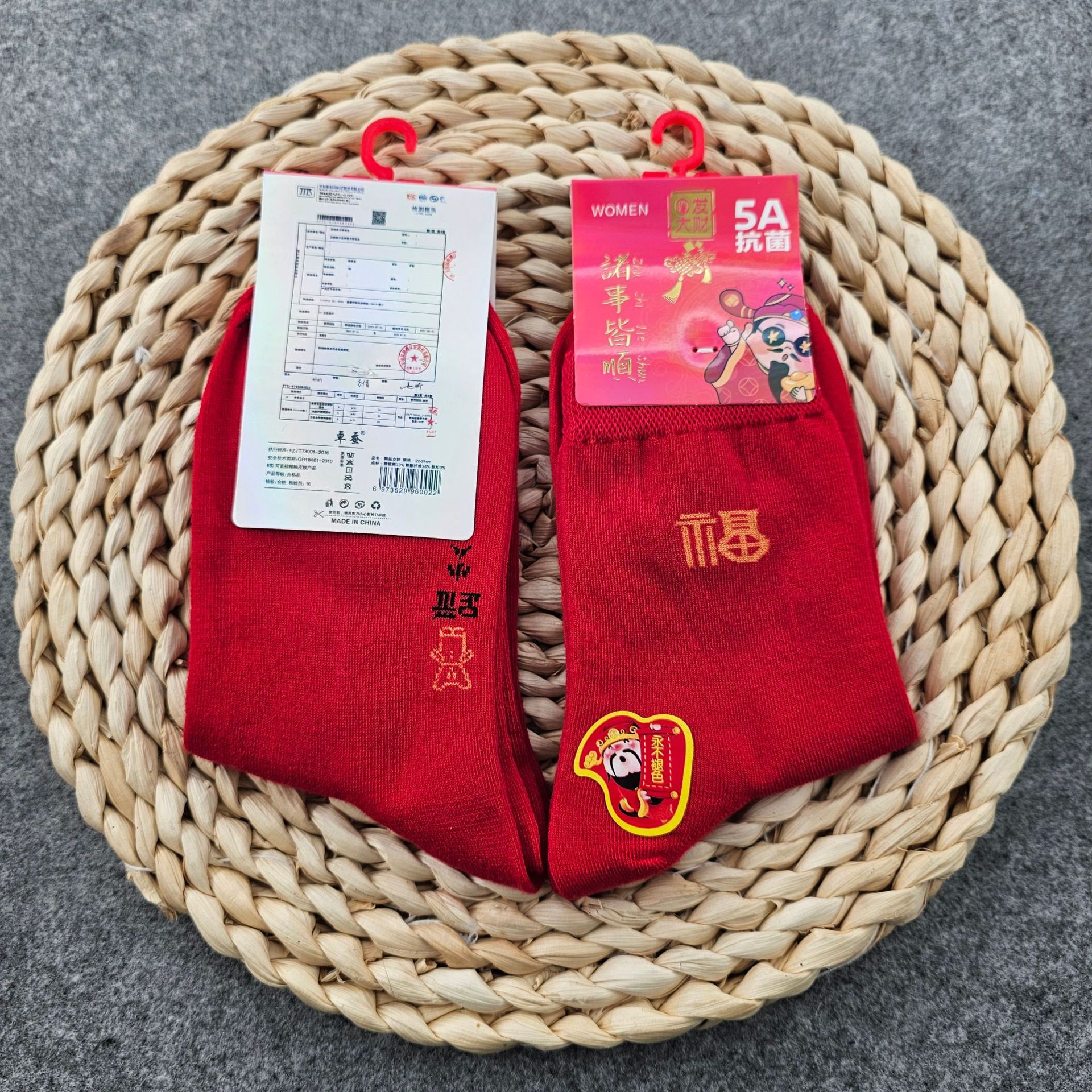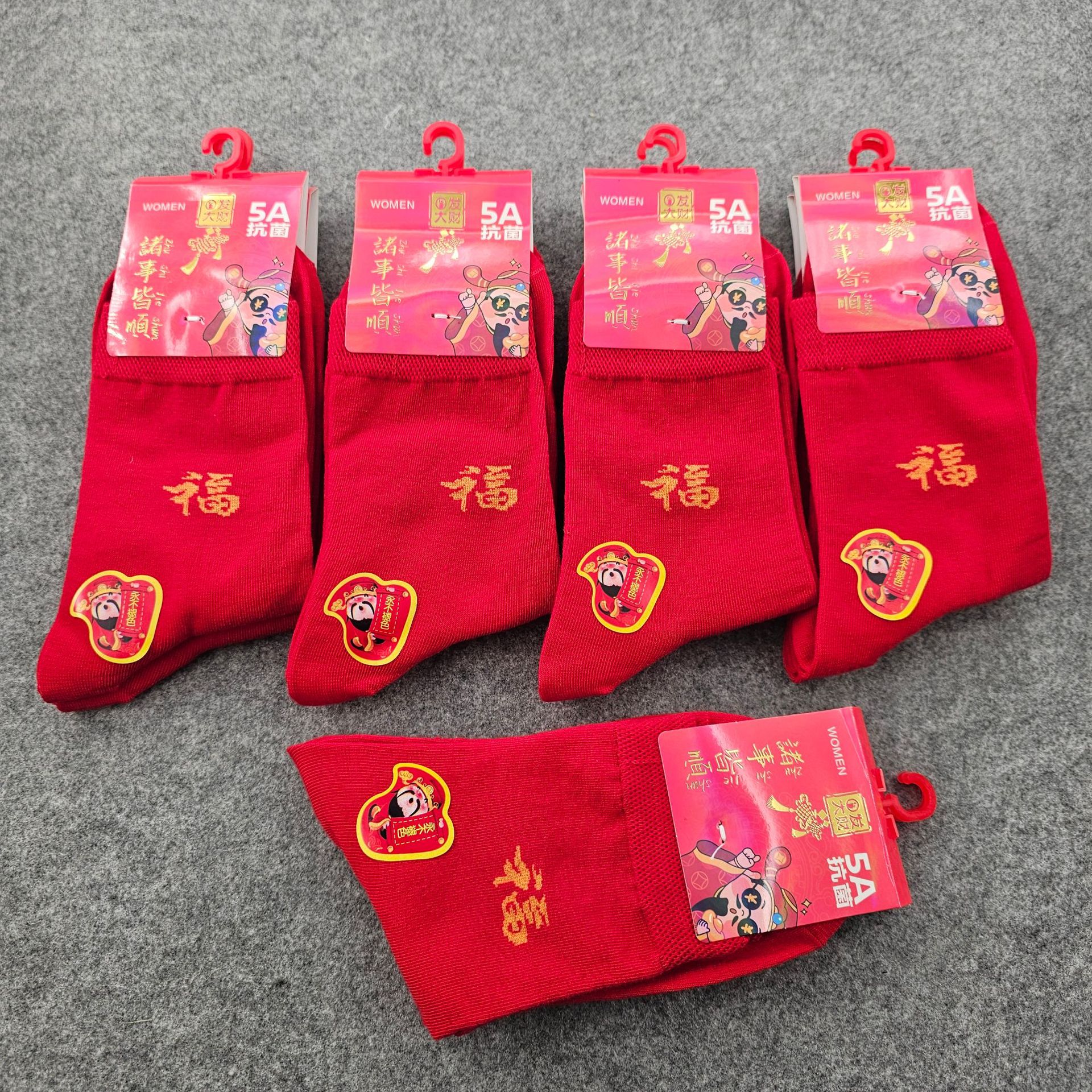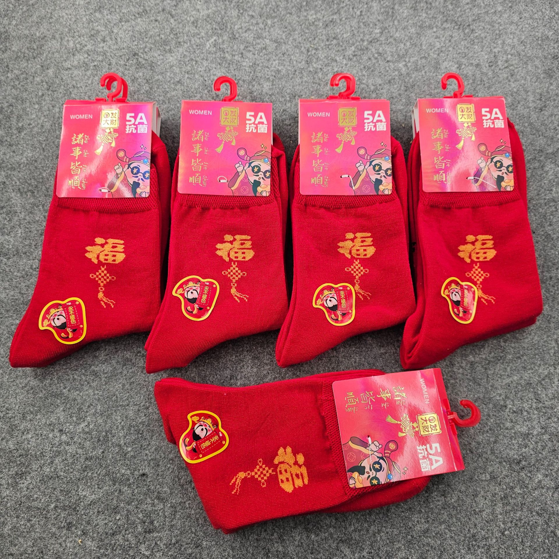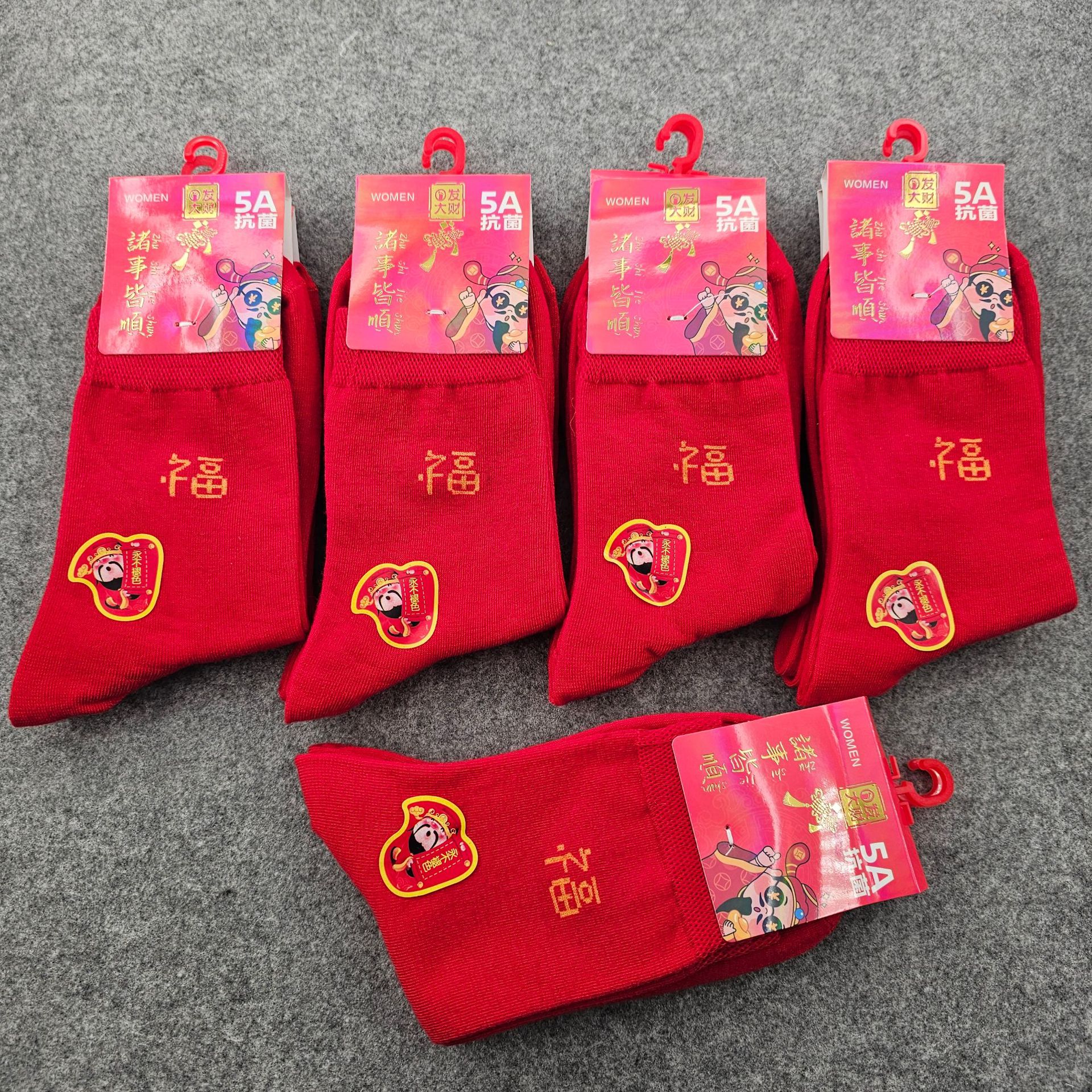 빨간 양말 결혼식 축제 양말 가을과 겨울 커플 남자와 여자 튜브 하이 웨이스트 올해 빨강 럭키 워드 코튼 양말 도매